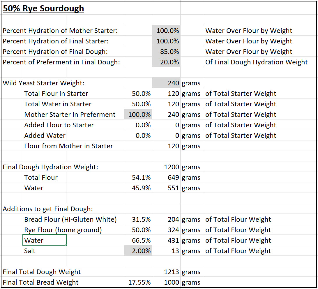 2) 70% hydration with 50% fresh homeground Ohio organic rye in the flour bill. Starter was 20% of total loaf and all white at 100% hydration.