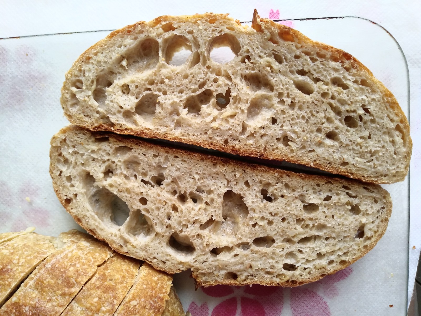 3. Subbing half of the whole wheat with spelt. To compensate, I held back 10 g of water (approximately 4.2% of dough hydration excluding porridge).
