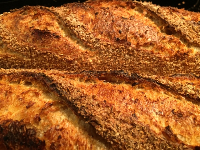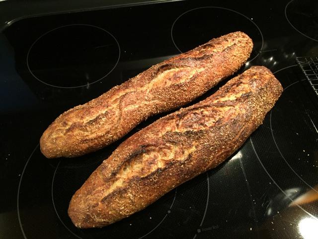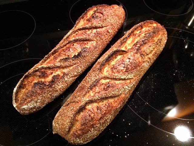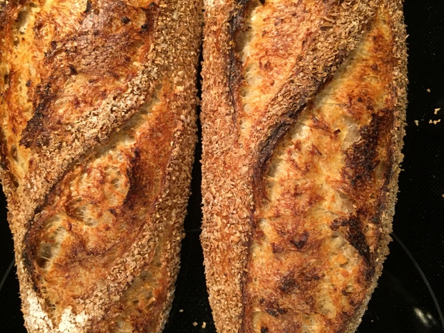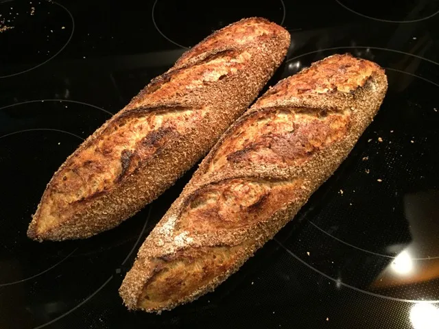 As baguettes (long batards),of course. Covered by wheat bran.