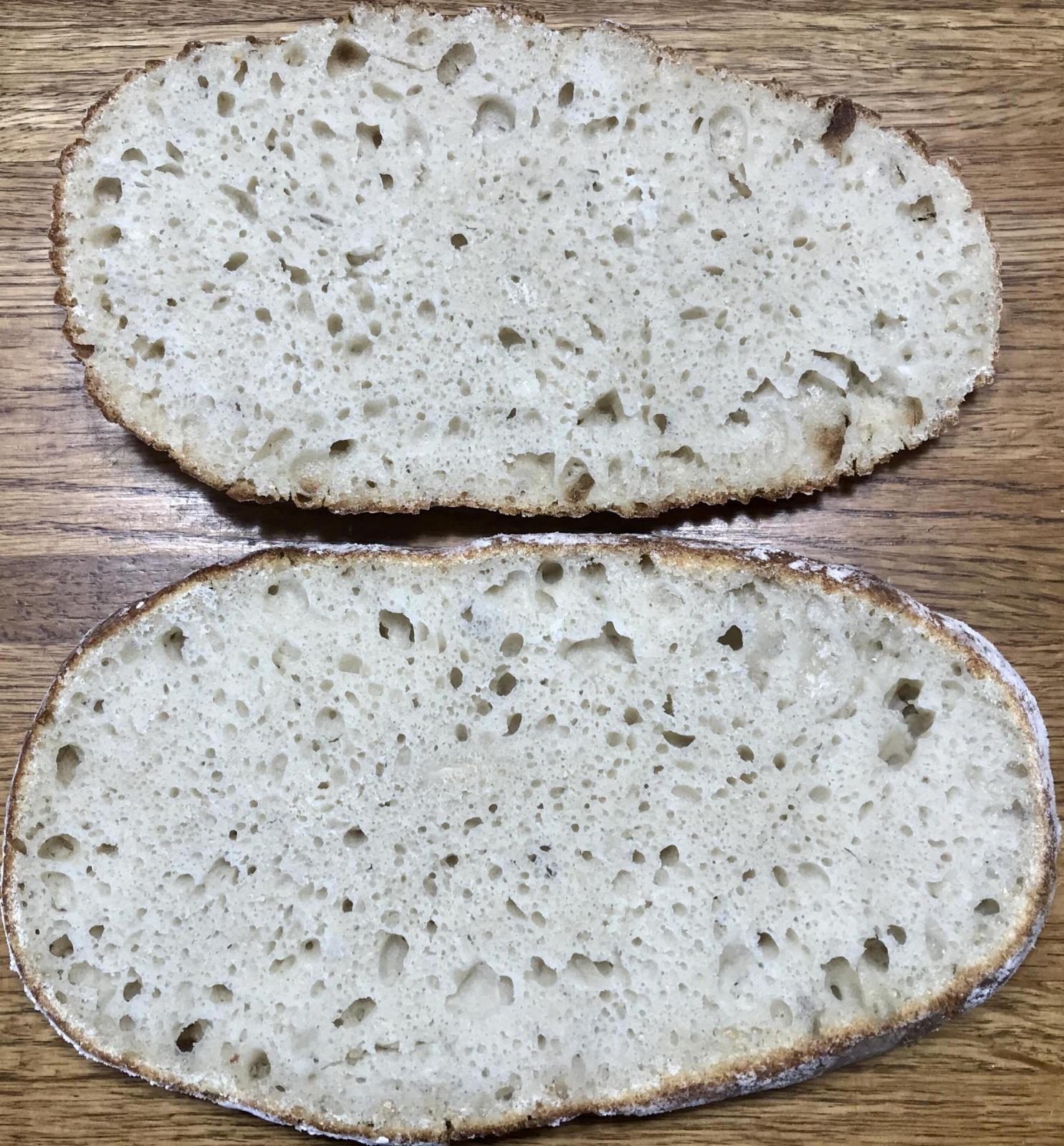 Crumb was a bit tight, especially for 80% hydration. It was better at the beginning and end of the loaf, but this was the middle: