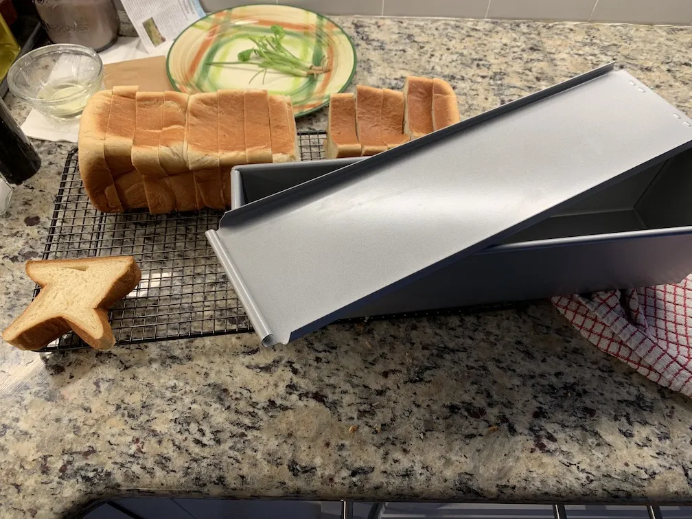 Hi. I moved about a year ago, and I felt like I went from an expert home baker, to an awful baker. Here's what changed:- San Francisco (dry, cold, 0 elevation) to the suburbs of Boston (usually humid, extreme temperatures, ~300 feet elevation)- GE Profile electric oven to a GE Monogram built-in electric oven Other than that, not much. And to me, I would think those changes don't matter, but I list them in case someone thinks otherwise. Attached is a recent problematic example of a baking failure. I used the goldtouch williams-sonoma pan, and out came pretty good bread (it's Hokkaido milk bread if that matters). I used the aluminized steel pan, shown here:https://www.amazon.com/gp/product/B004DDNDUY/ref=ppx_yo_dt_b_search_asin_title?ie=UTF8&psc=1 (Both were the same dough, made the same way, in an oven on Bake (not w/ convection on), and cooked at the same time for the same length of time. I also used a thermometer on each and ensured both had an internal temp of >190F.) With a cover. It was a failure. See the "Z" shaped bread. What went wrong? (On a side note, I like the idea of the longer pan w/ a cover, because then there isn't a top-crust. However, the bread came out Z-shaped, which is pretty problematic for obvious reasons.) Help. Thank you!