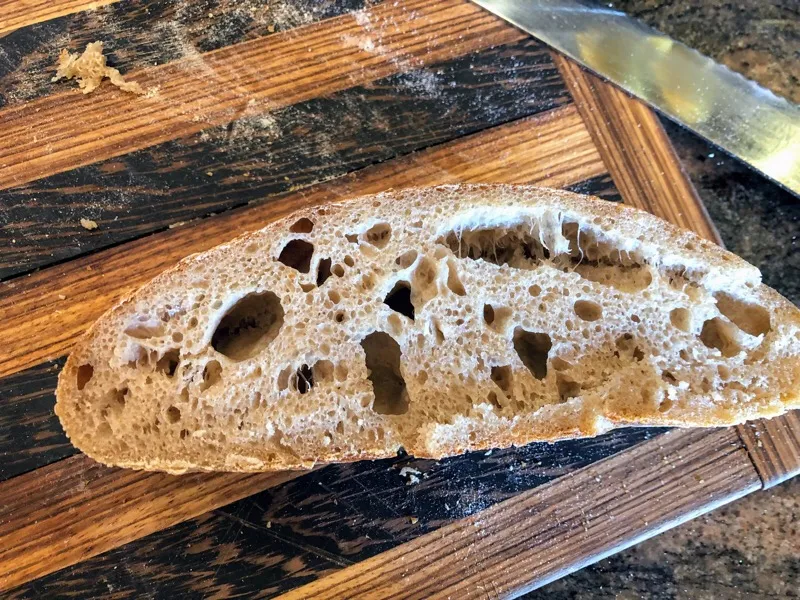 Reinhardt says wild yeast levain bread will be "thicker and chewier" and not dry. Maybe I'm not far off. Just expecting much lighter, dryer crumb.