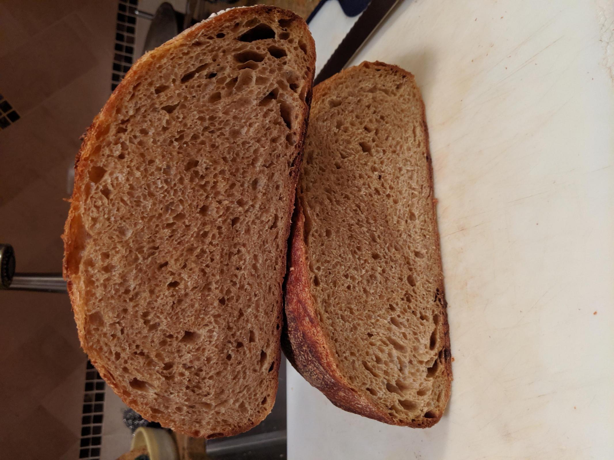 Tastes good, but a bit disappointed in the crumb. Decent oven spring.