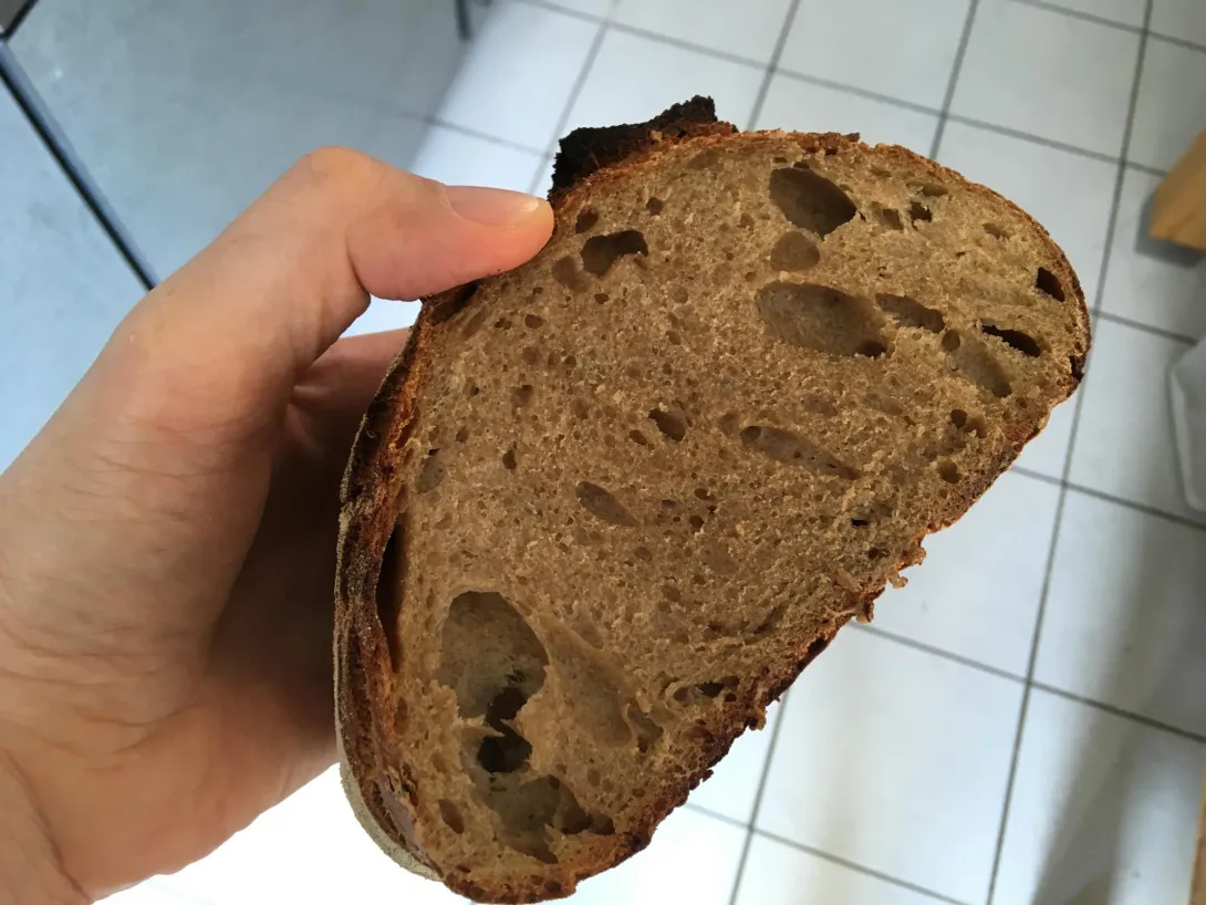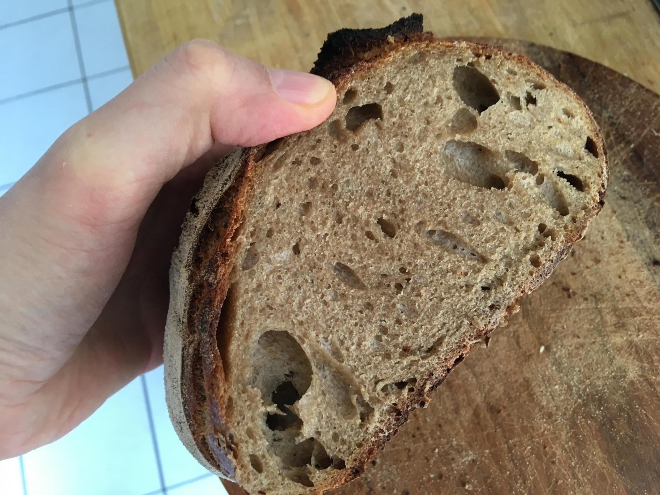 Now, don't get me wrong: this loaf is definitely edible, outright delicious...but as you can see from the crumb shot, there's lots of room for improvement. What do y'all think?