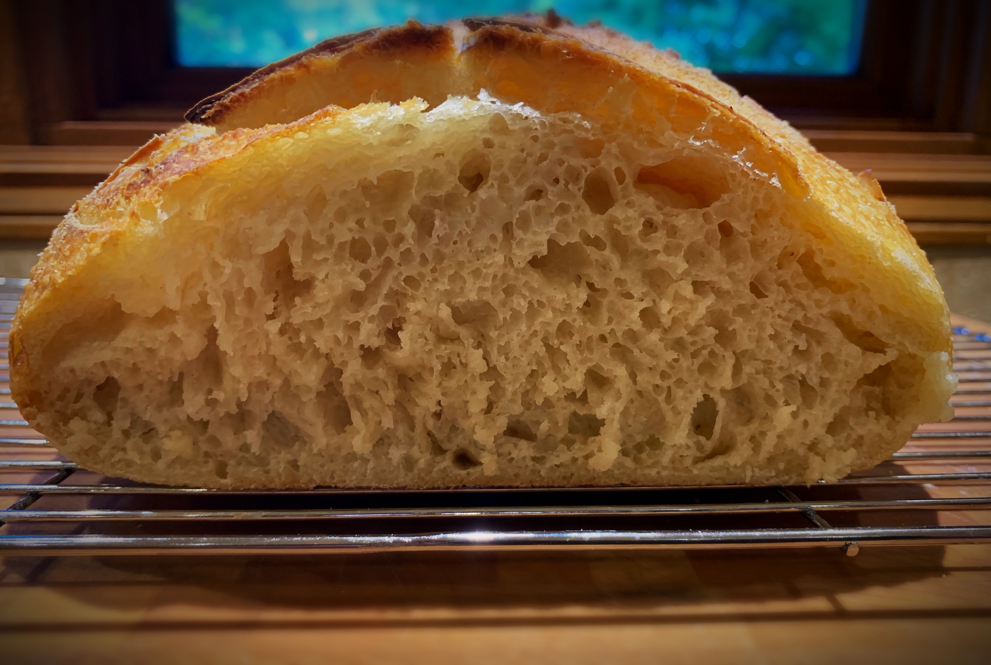 I thought I destroyed this loaf . I mixed it up at 5 PM yesterday, did three stretches and folds, left it on the counter and fogot about it until this morning at 6 AM. It had tripled in size and I thought it was way over proofed. I quickly formed the loaf and put it in the fridge for 12 hours. It looks like it might be OK?