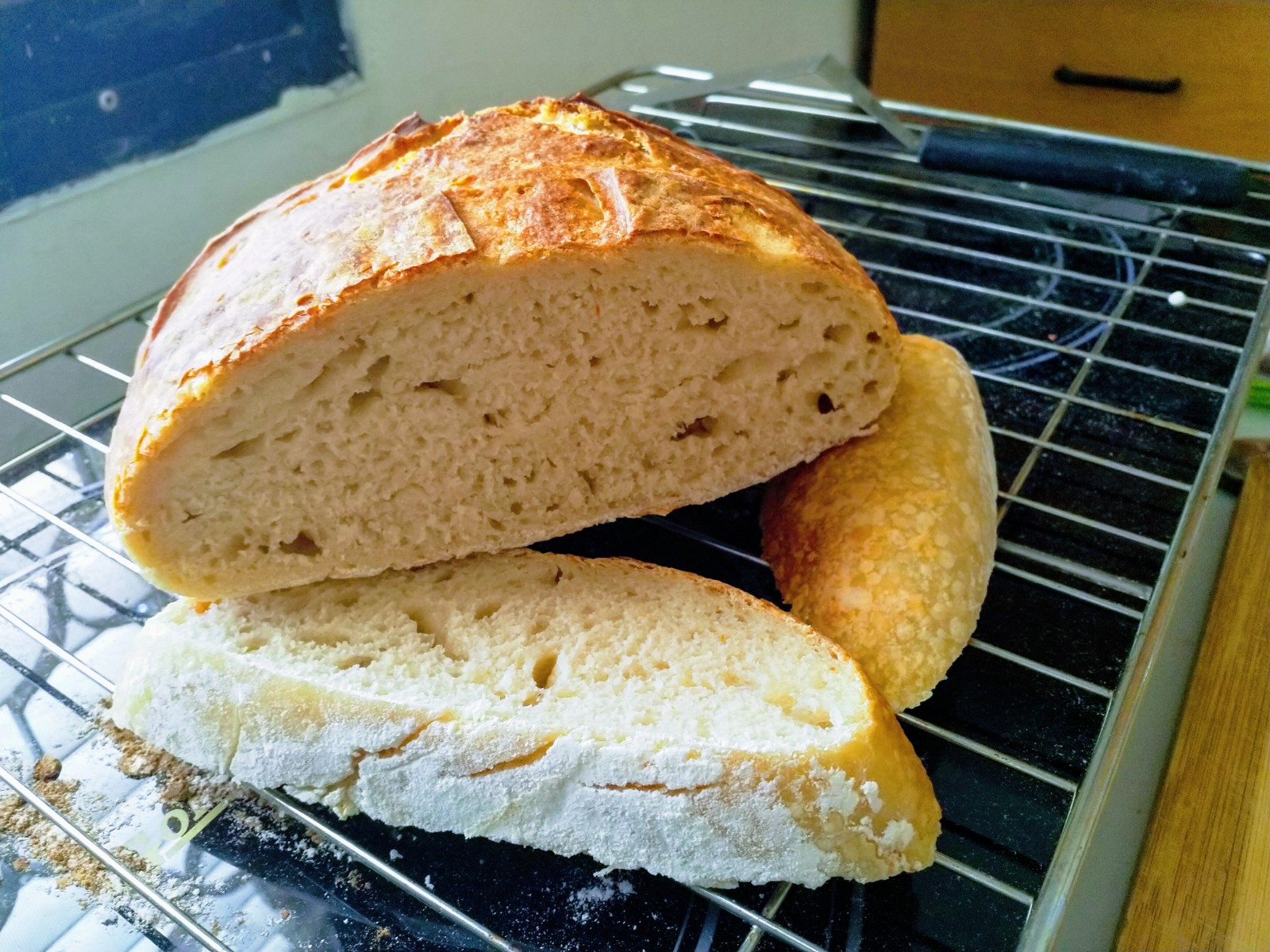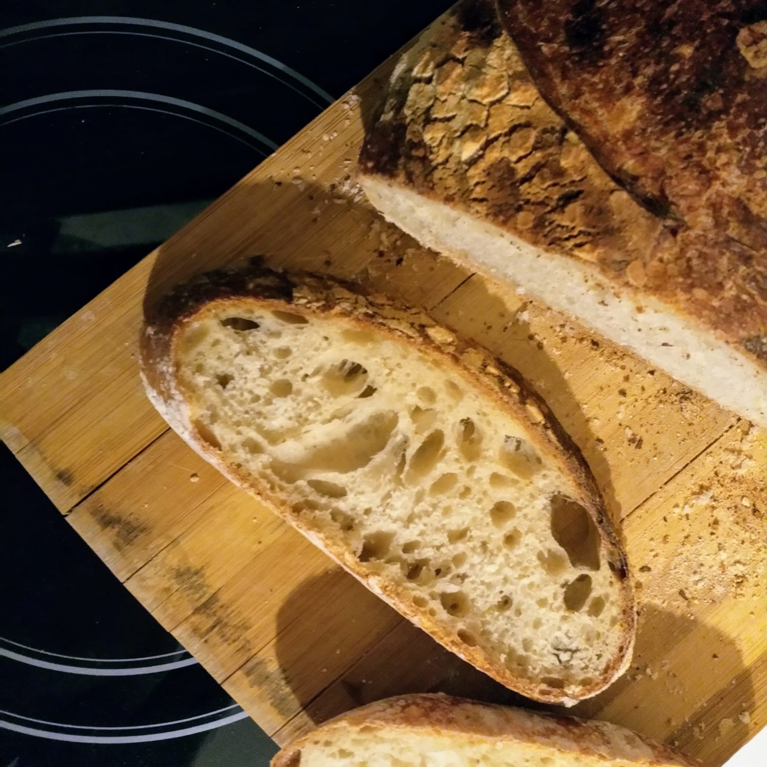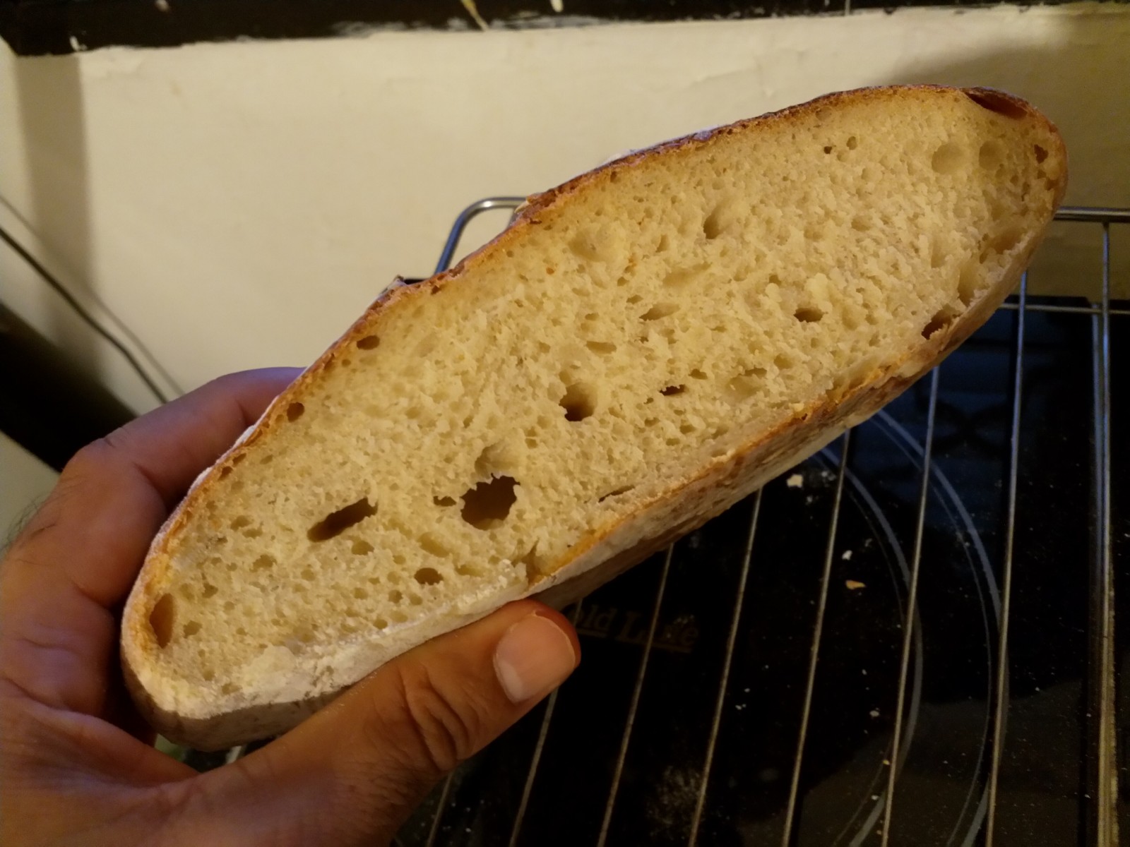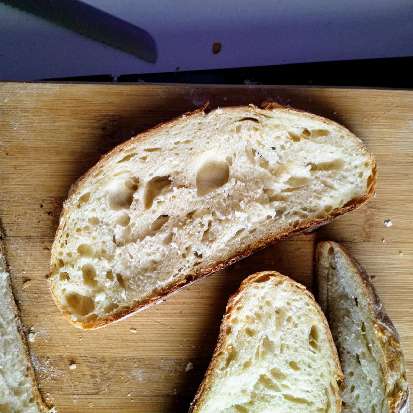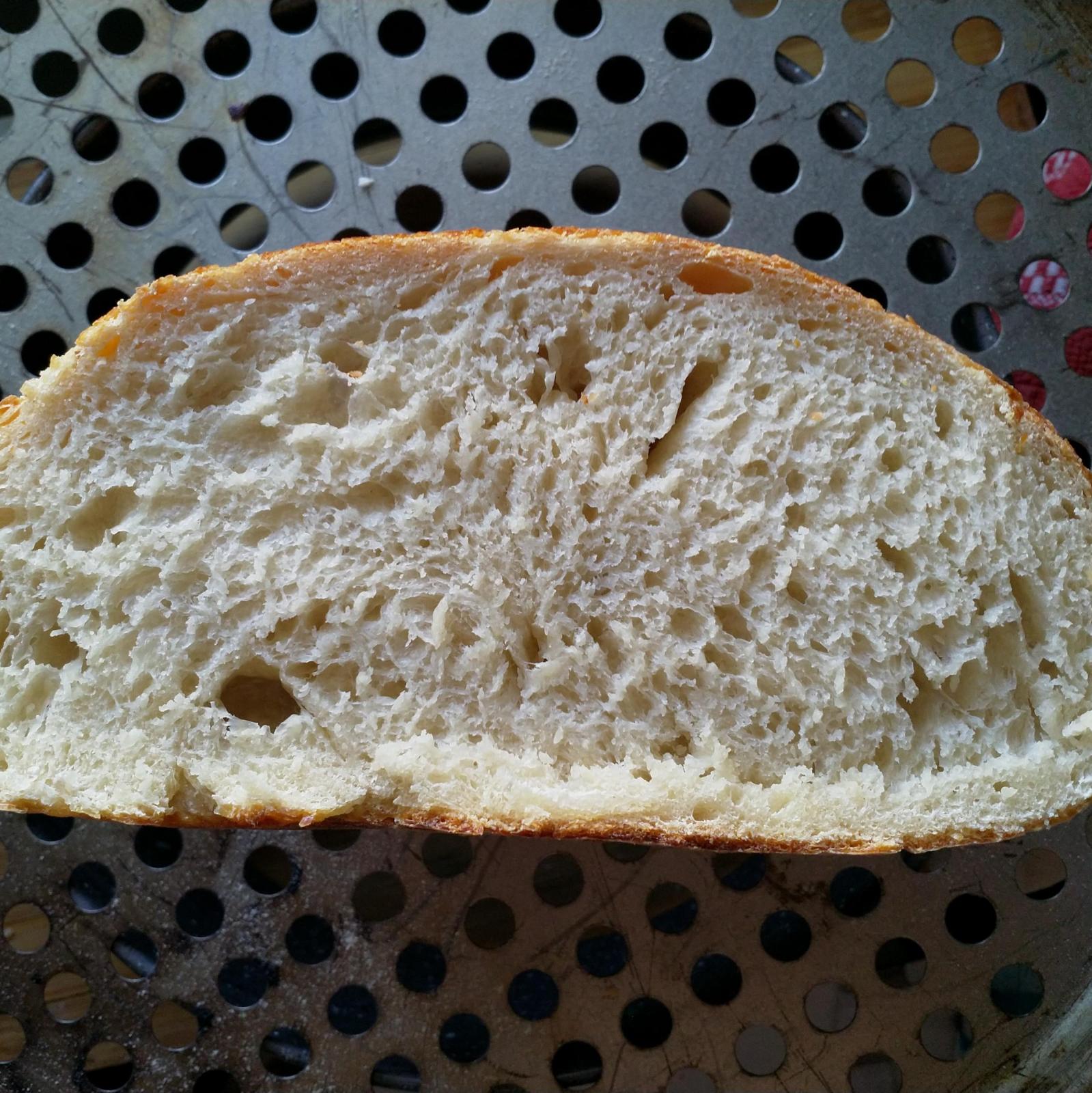 The crumb is lighter and I have more bubbles and some bigger ones too, it's less dense than the first one but...