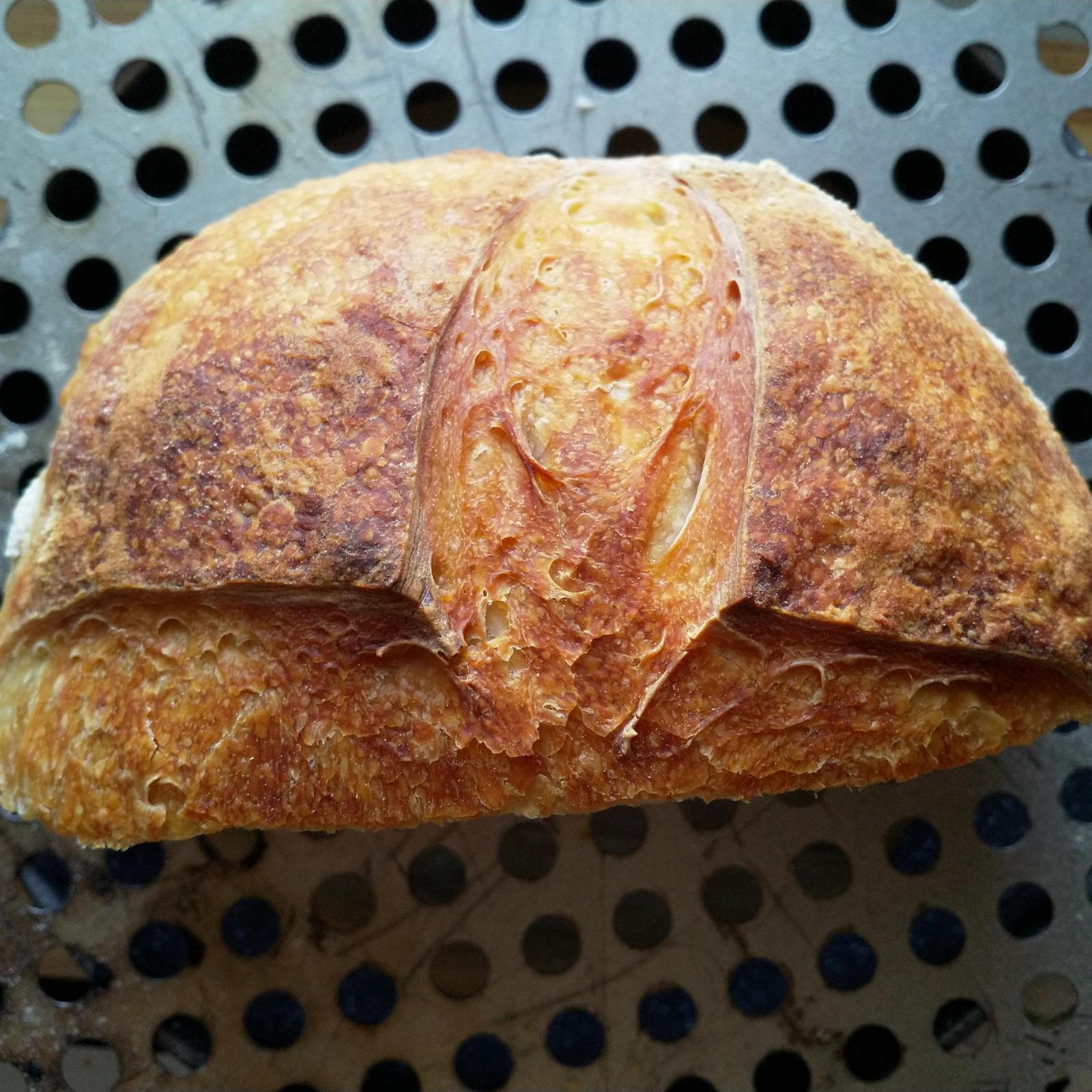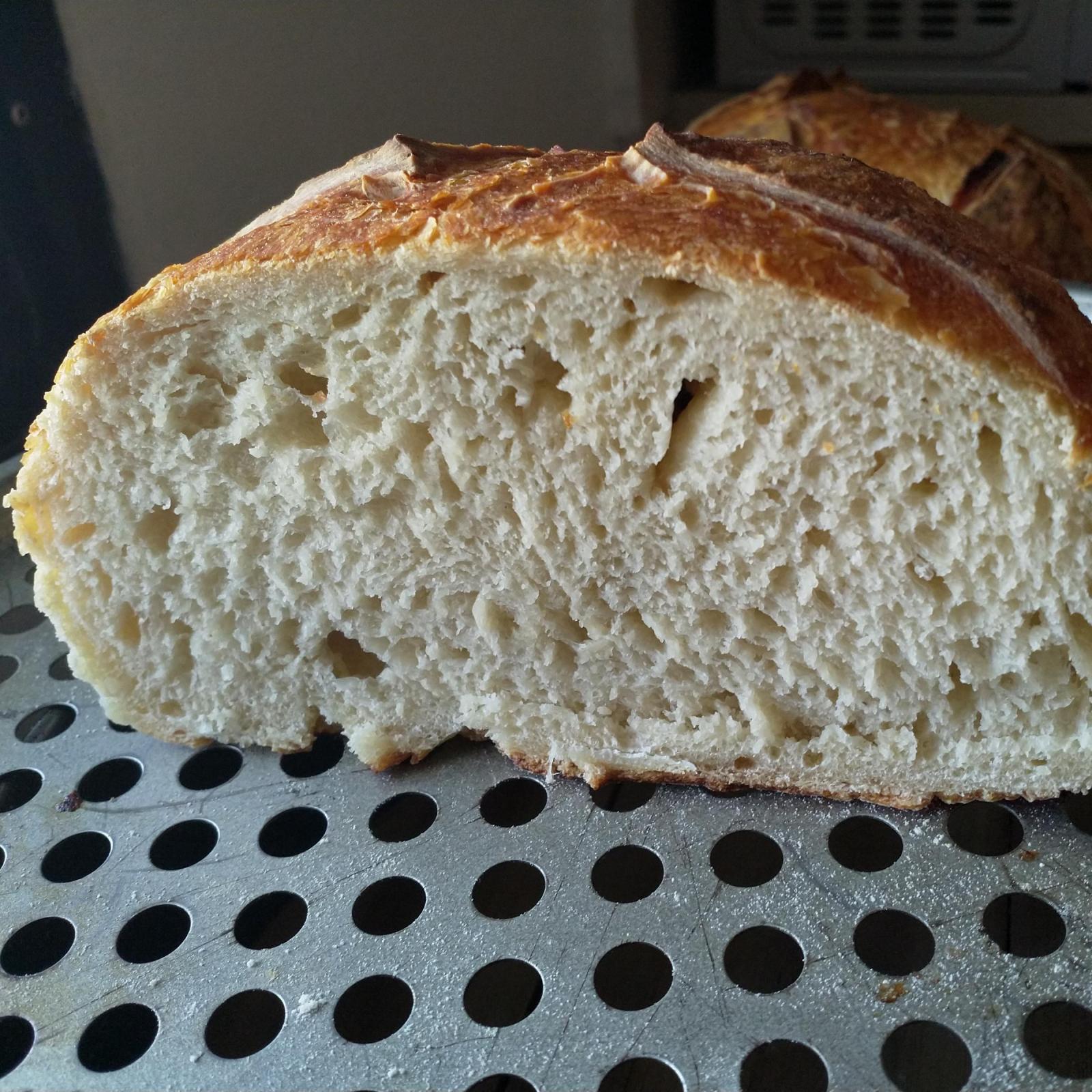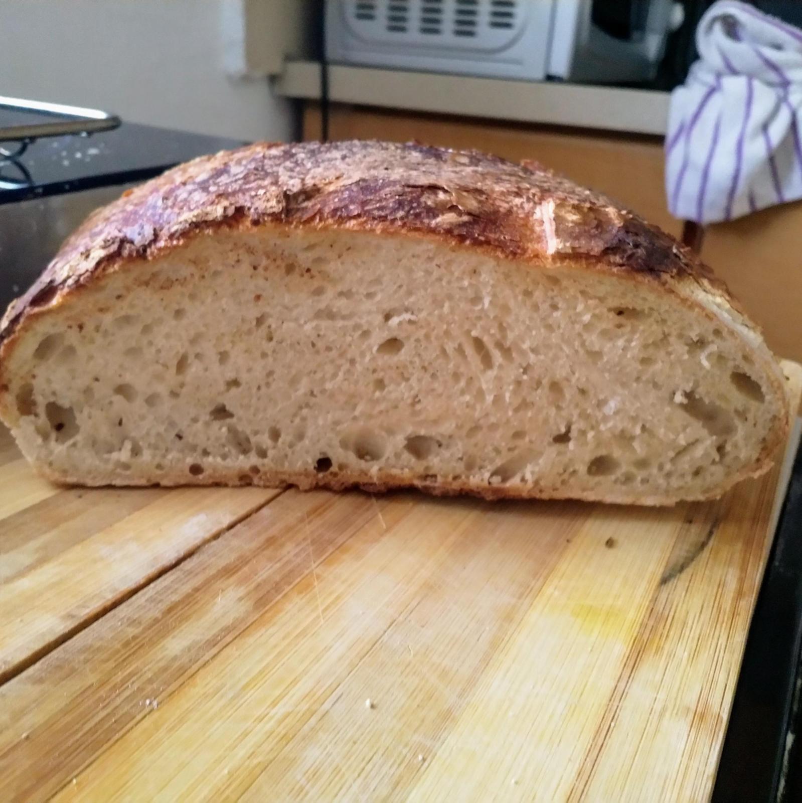 It puffed up, got a good spring, the crust is good and the crumb is not too dense, the taste is great, a bit more tangy than the other loaves...