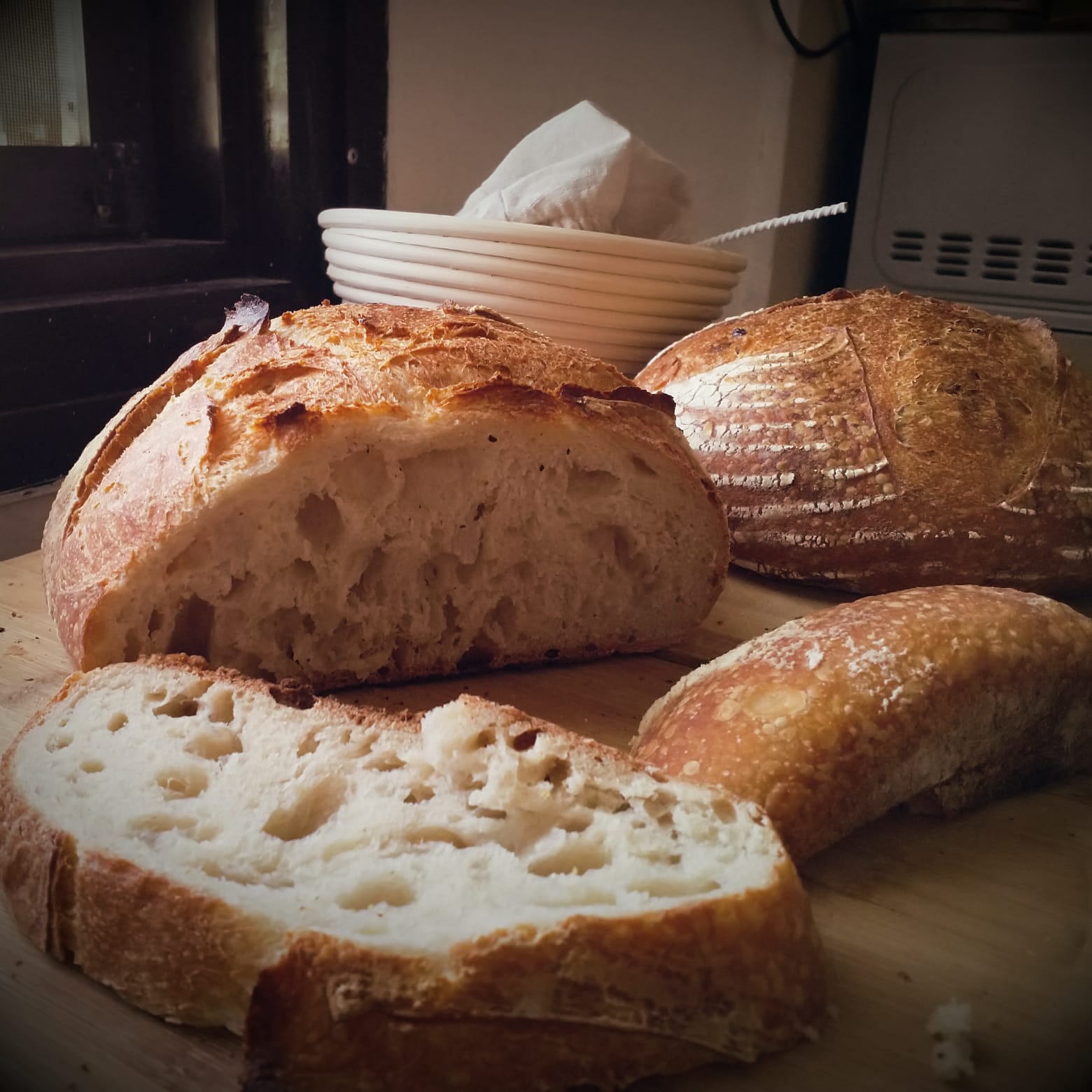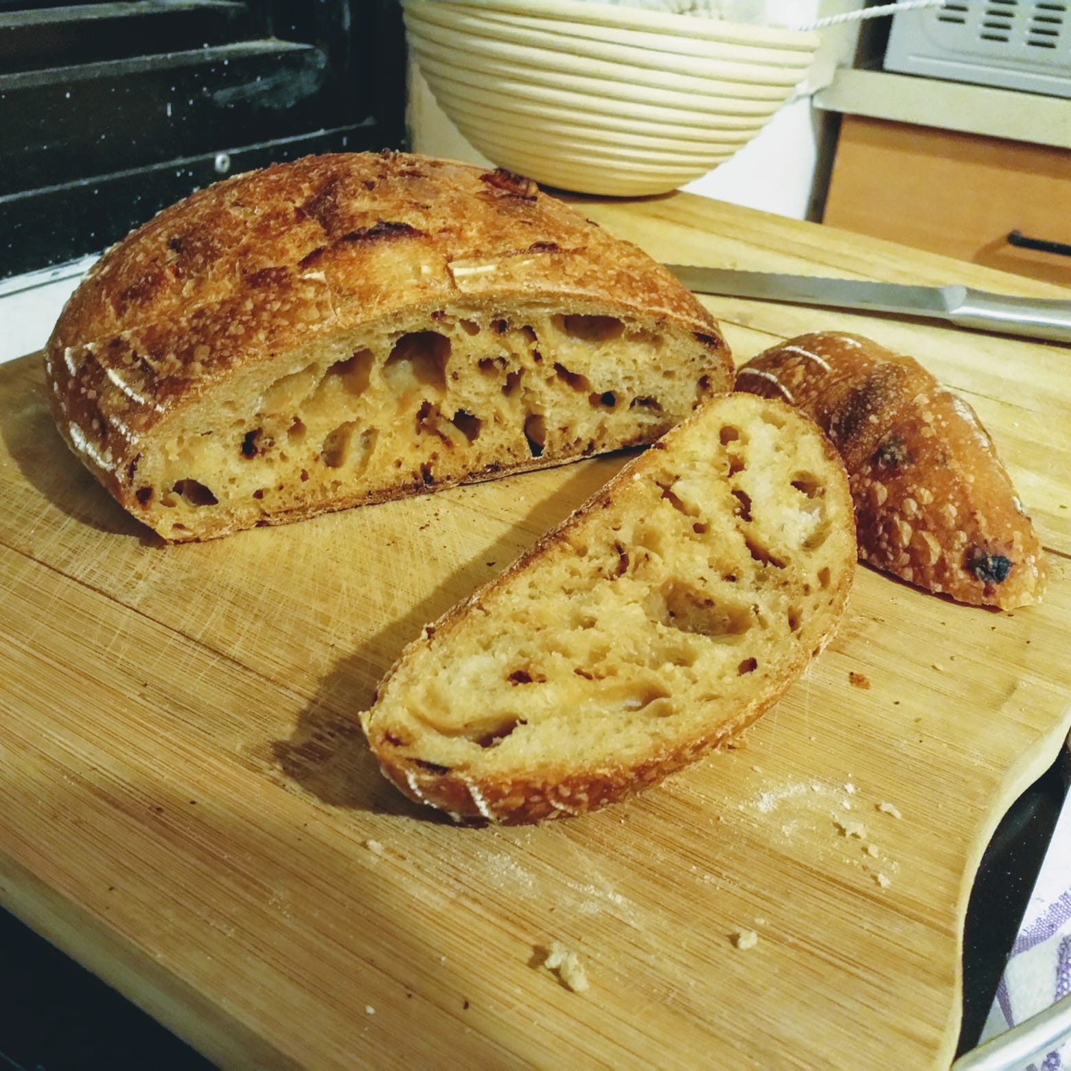 Recipe: 150g starter + 300g water + 450 flour + 9g salt.