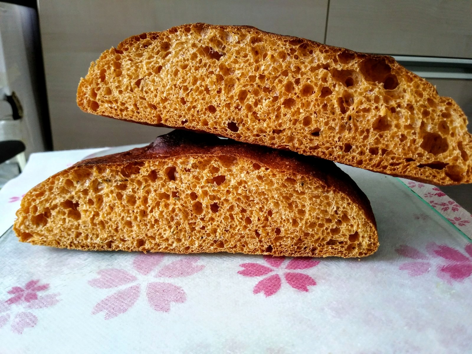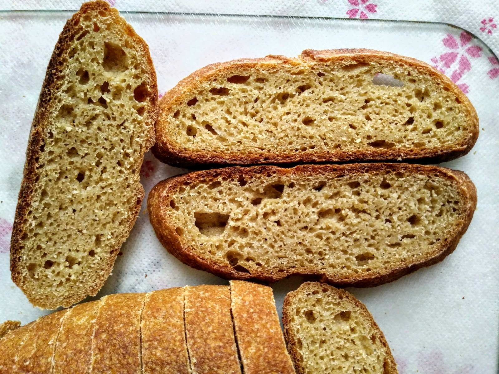 Last week’s bread. No freezing and thus slightly over-proofed.