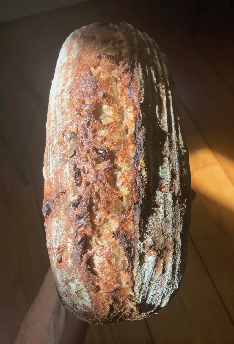...as I move around the room, iPhone in one hand, freshly baked loaf in another, trying to capture the essence of the bread in the morning light. :D