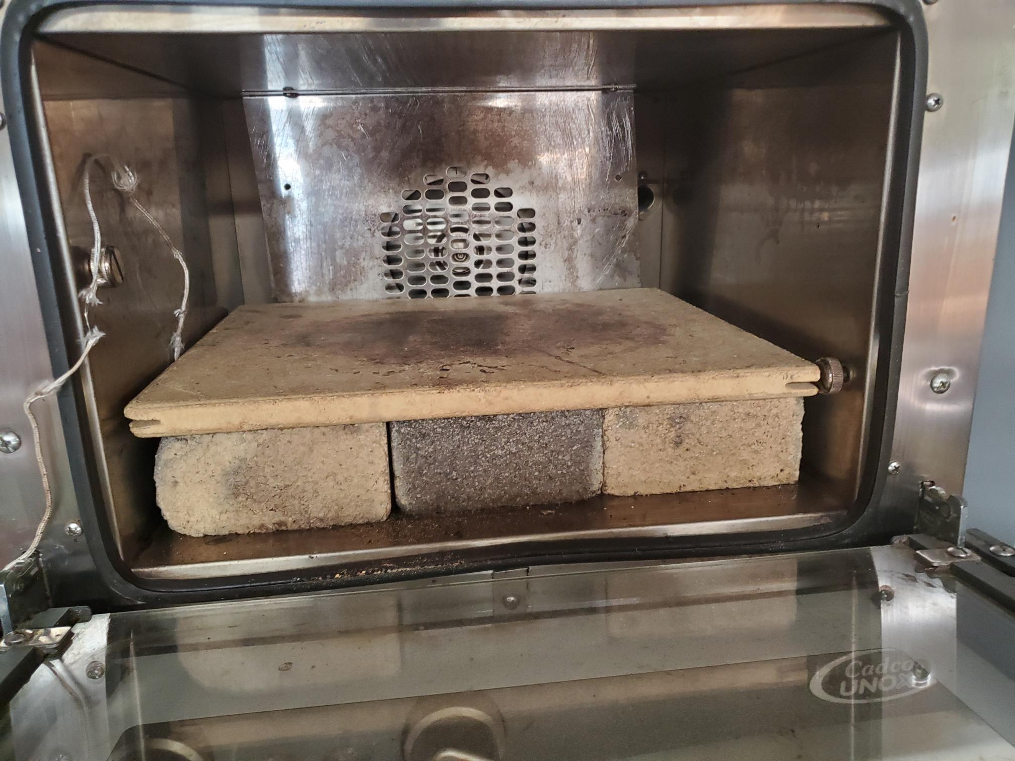 I loaded the oven with 3 firebricks, and then a pizza stone, and preheated it at 525.