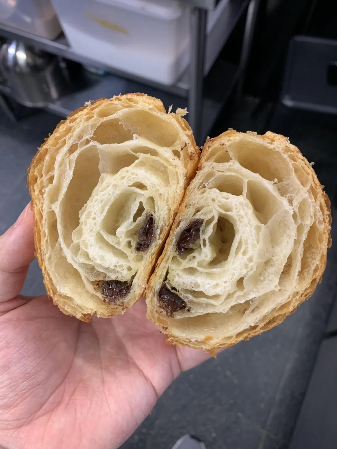 My folding is double fold and single fold. 30% butter ratio to dough.
