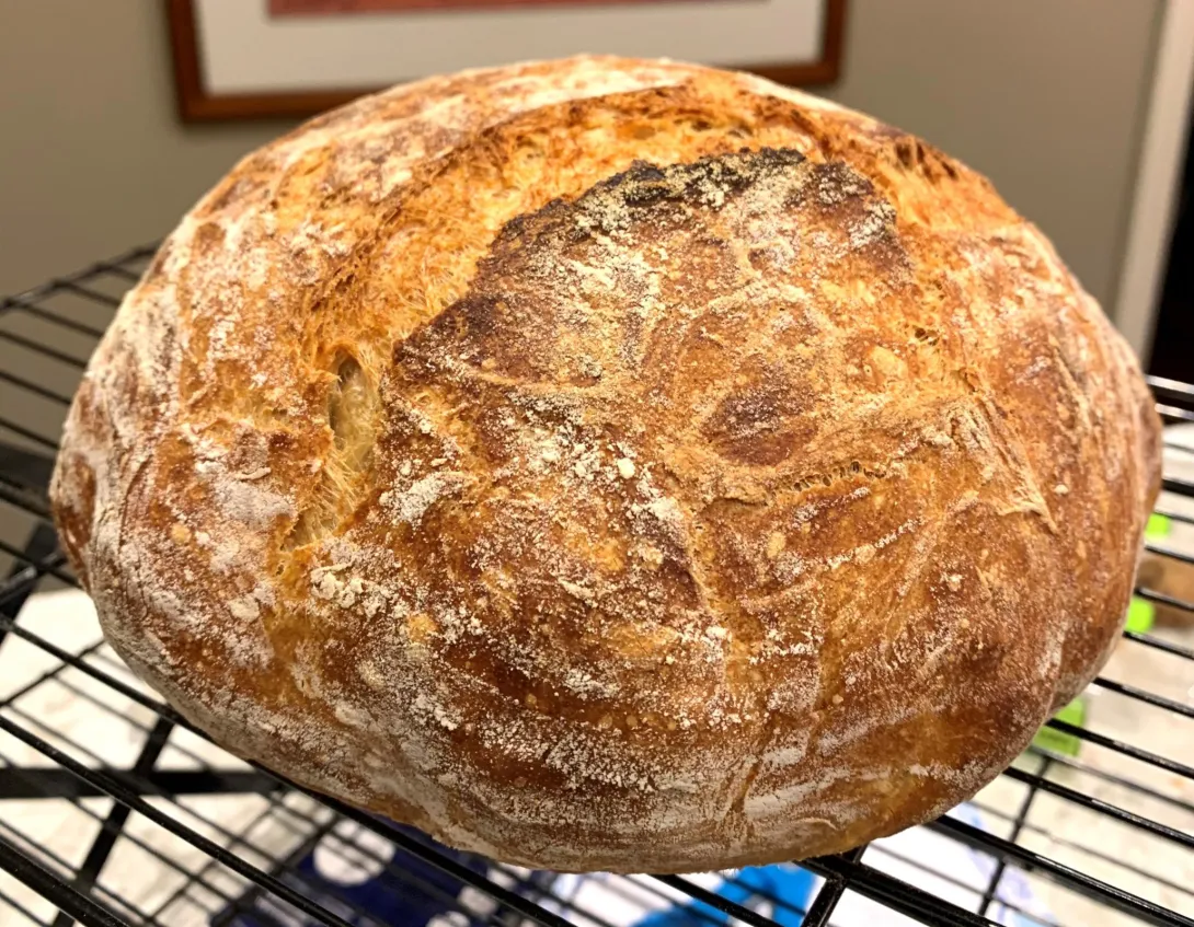 Bulk for 5 hours until tripled in size, pre-shape, shape and proof for about an hour