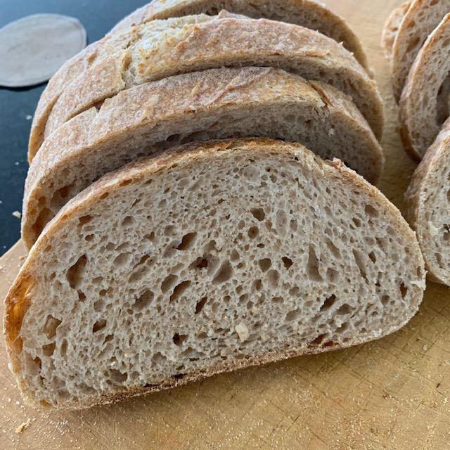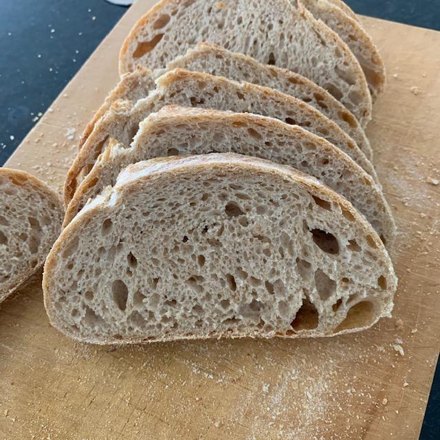After lunch I cut loaves so whilst not particularly open I am reasonably satisfied - a little more fine tuning required though. Crumb shots below