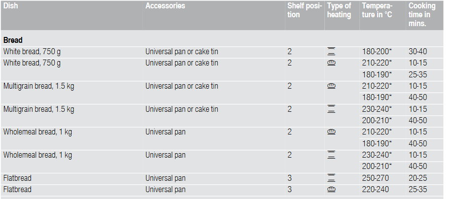There is no other relevant information in the Manual, for example about baking on a pizza stone, but elsewhere it specifies that the bread baking settings are for 180º C to 240º C.