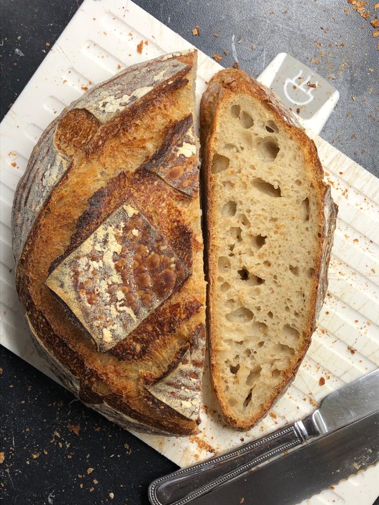 Sunday morning: bake in a dutch oven at 250C for 15 minutes, then 230C for another 25-30 minutes (covered for the first 25 minutes).
