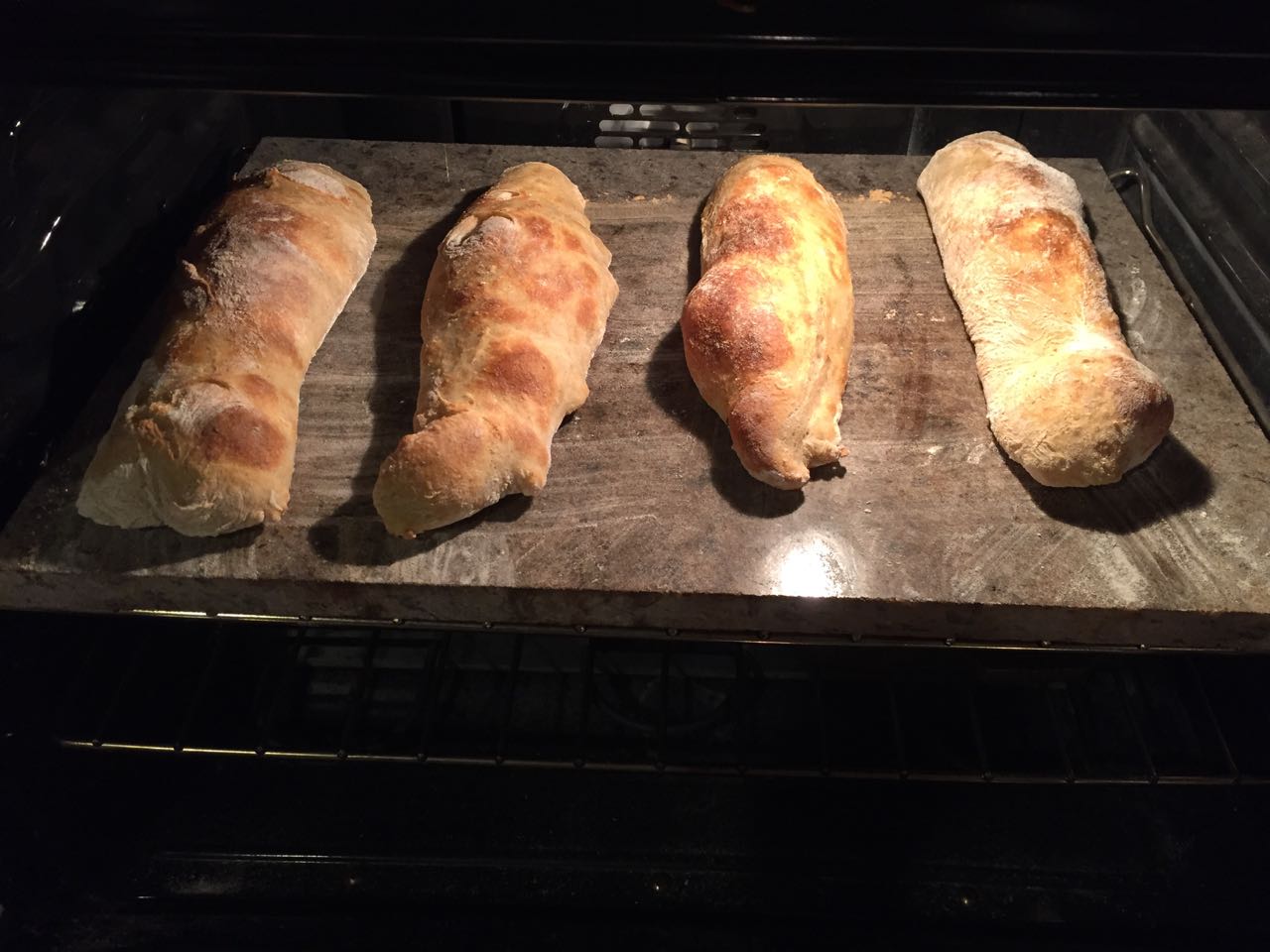 There were two key elements to the success. The first was to the initial mix being performed by hand rather than relying solely on my mechanical mixer. This step now develops a smooth fully incorporated dough ready for the mixer. The second was the careful handling of the dough during the transfer from bench to oven peel. the “wettest” and lightest handling of the divided dough as possible.