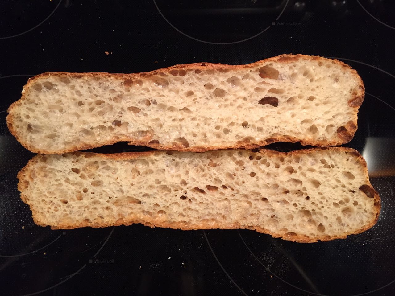 Alan, you are a master of obtaining a nice crumb in a baguette (mine resemble the real thing from the outside, but the crumb remains dense). How would you compare the challenge of producing a nice crumb from this recipe with the challenge of a standard baguette? Is it mostly in the handling? Or does the mixing also make a difference?