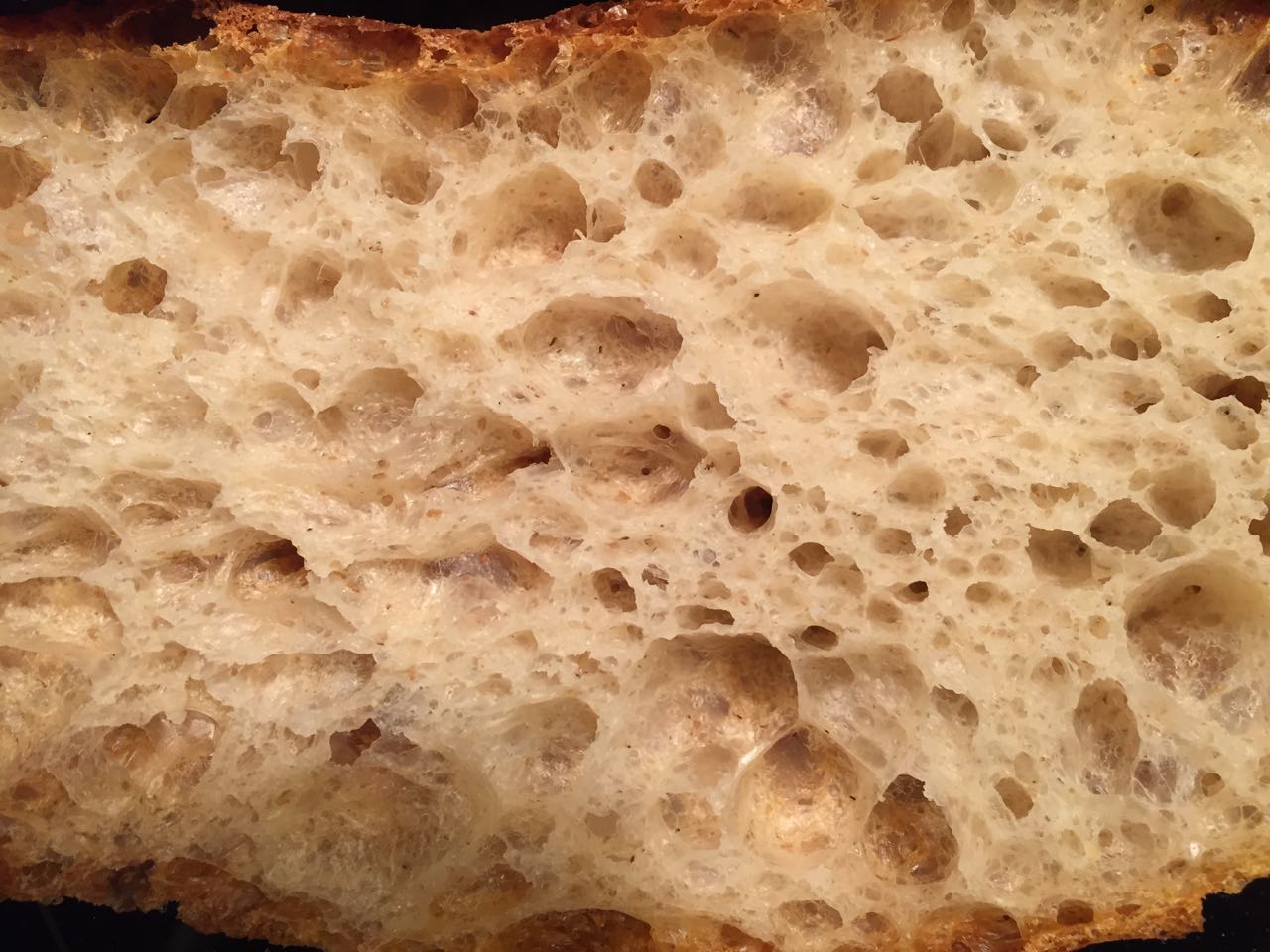 An earlier failed attempt at 85% hydration. The crumb was okay, actually fairly good.