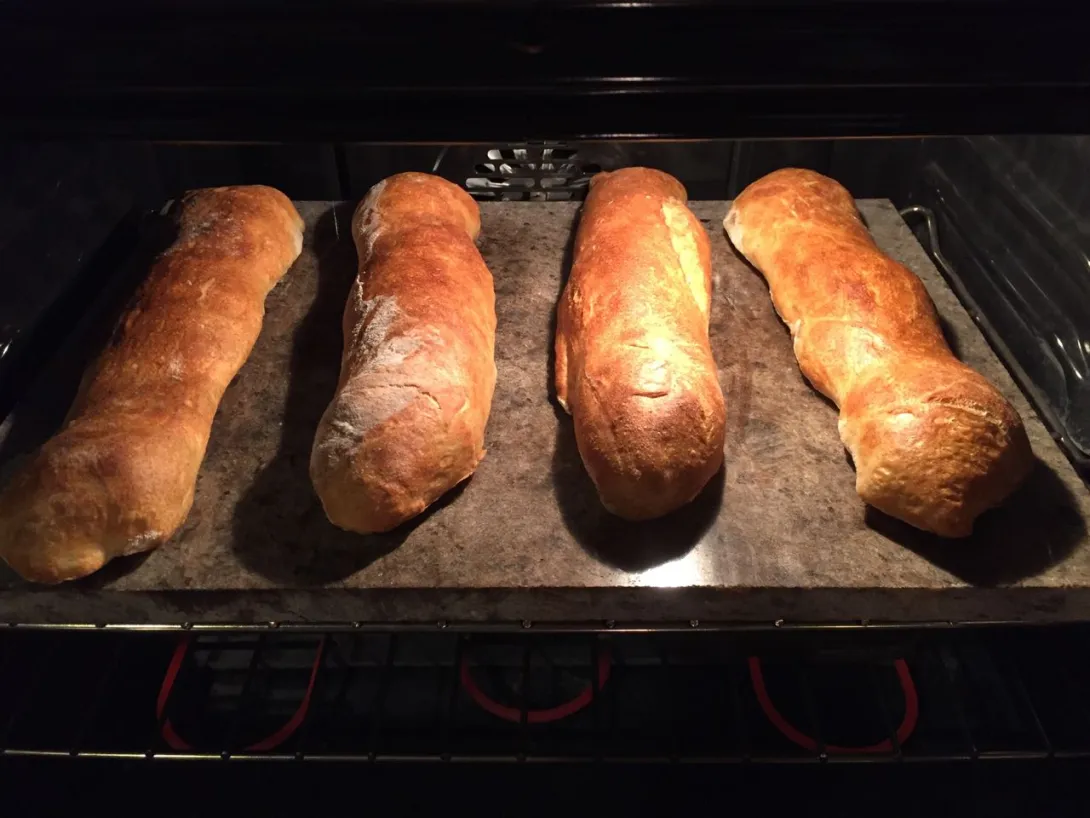 | Release steam rotate loaves, continue baking at 440dF for up to 30 min. Oven off, vent for 3 min. | |||||||||