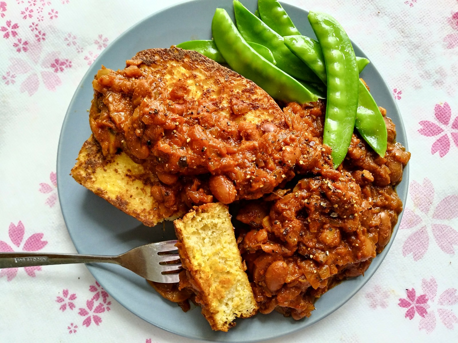 Challah French toast with rajma (red kidney bean curry). Talk about multicultural dishes!