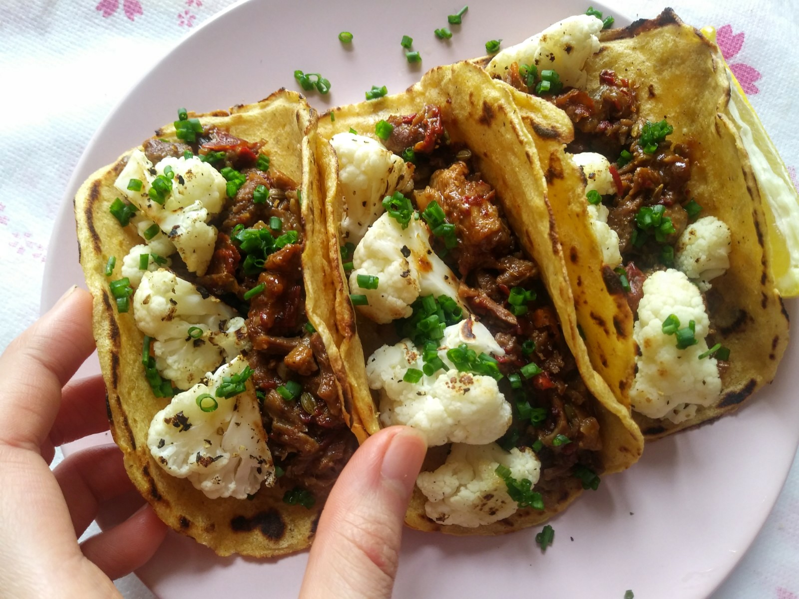 Satay chicken, coconut paniyaram & miso eggplants with leek and tomatoes, aka one of the weirdest combos ever