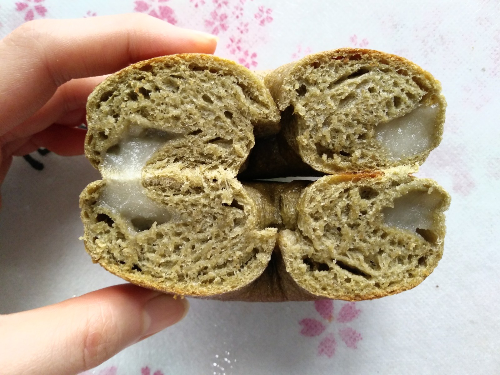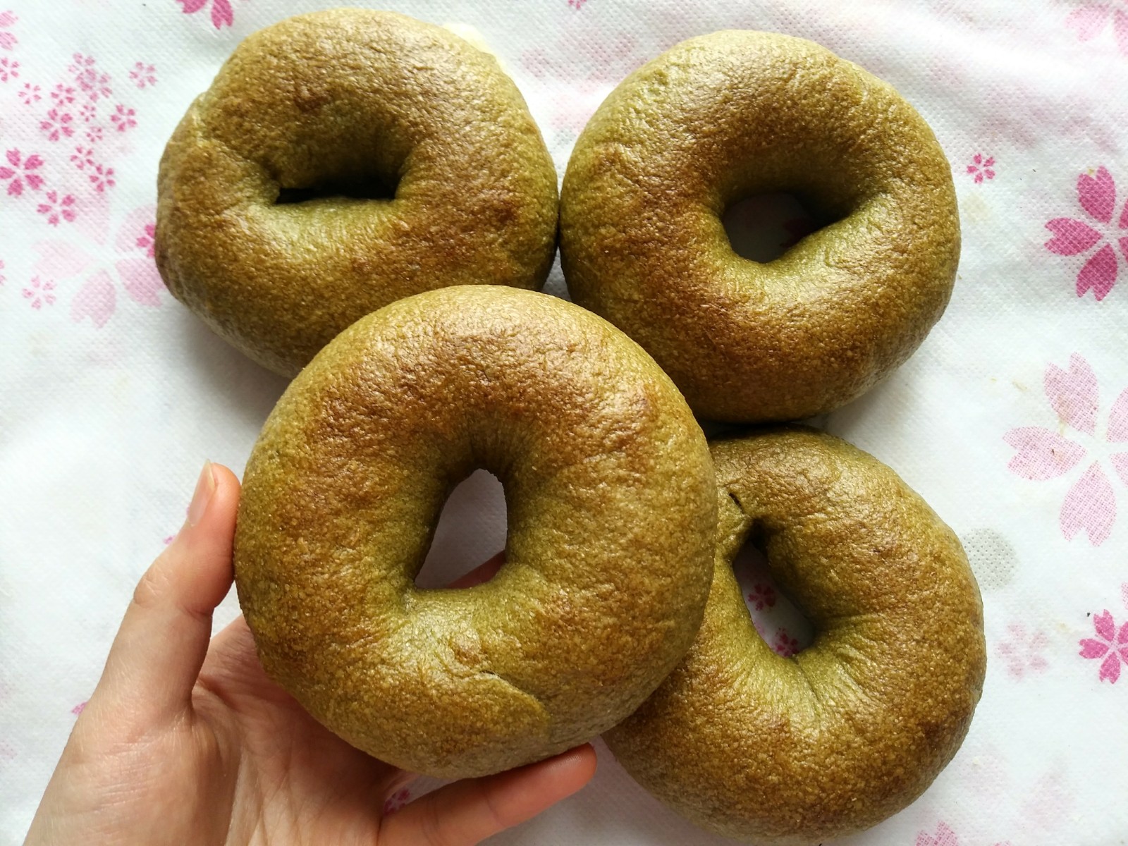30% Kamut 2% matcha, homemade mochi-stuffed SD bagels