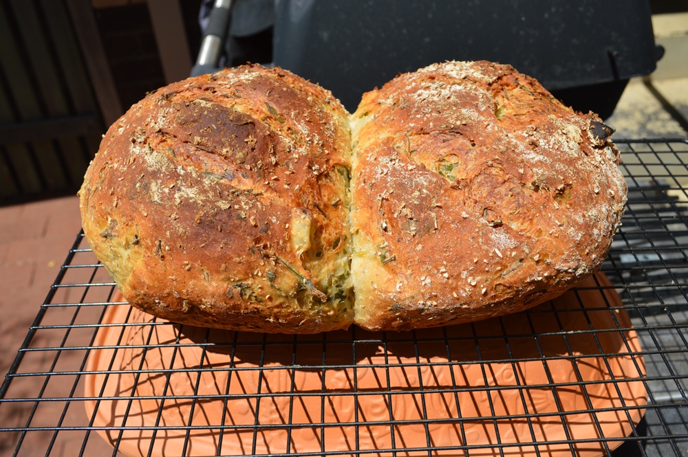 I did divert a bit from the recipee as i chose to make it 50% wholemeal rather than 100%, i also used slightly less flat leaf Parsley as my bunch was under the weight suggested i did include some fresh time from the garden though. It ended up being a rather sticky dough due to the cottage cheese breaking down slowly during the mixing. i think if i was doing it again id mix the wholemeal flour and the cottage cheese together first to assimilate the cheese earlier. I also got to use my Romertoph clay baker for the first time, which was another charity shop find. I was suprised with this loaf as it was carrying high proportions of Cottage Cheese, Flat leaf parsley including the stalks and some sauted onion. I used Compressed yeast for this one. This was a tasty bread that went well dipping into a Malaysian Laksa and excellent on its own with a lashing of butter. I'm sure it would keep well but alas half was gifted and the other half has gone.