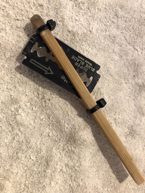 yes, the box cutter i've been using is a razor blade, but it gets very unwieldy when extended far out enough to make good cuts -- will take a look at the various suggestions here to learn more about slashing.