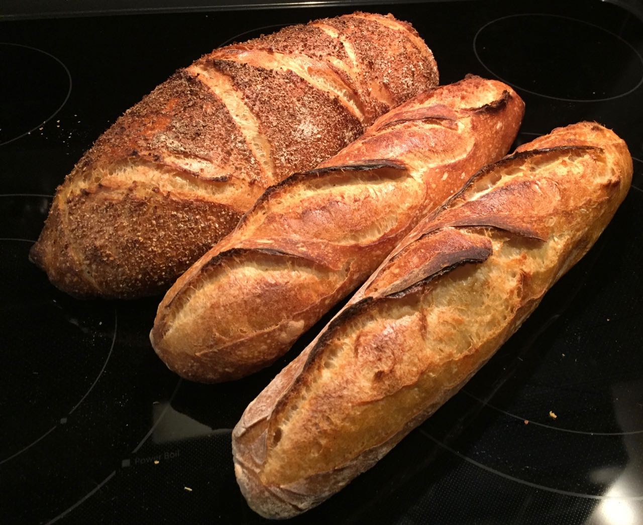 I hadn’t done a Ziggy for a while, and this was a learning moment for me.  Ziggy does not like slack or high hydration doughs.  As I placed the batard onto the oven peel, it, as well as the two baguettes, just settled in and started to sag in place.  More so with the batard than the baguettes.