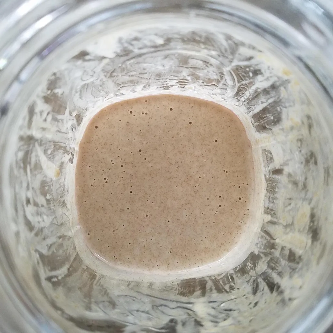 The picture attached is today's starter. I am using a quart mason and the stuff above the surface is just wet starter from when I tipped it around.