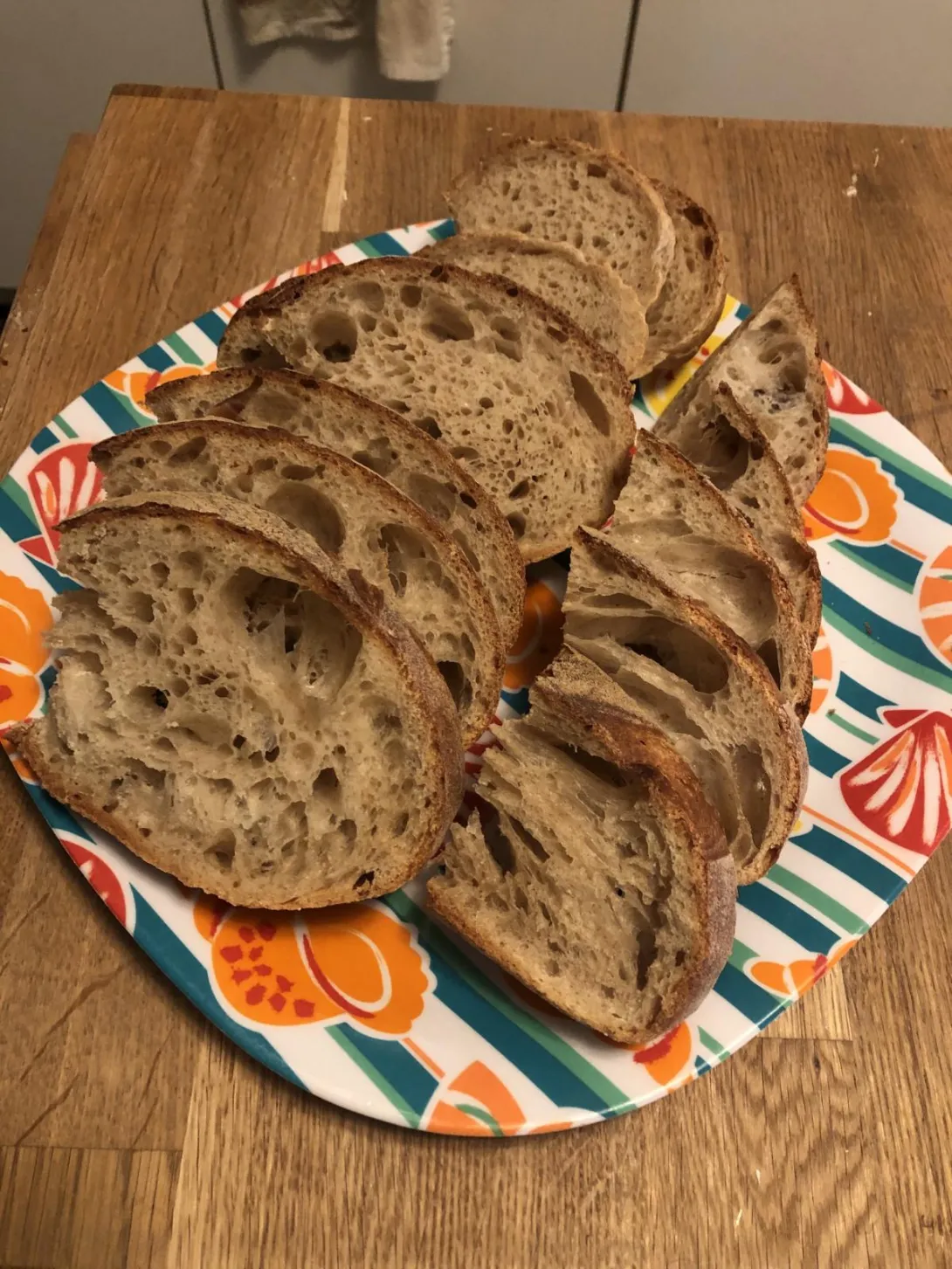 Does that seem like an ok recipe to use up the KASL? I'll also be using it to maintain my starter and build leavens (along with some rye I have stashed away). Would love to hear people's thoughts. Attached is a pic of the crumb I'm shooting for, this is from a bake last weekend using 90% KA bread flour (blue bag) and 10% whole wheat. Hope you're all staying sane and healthy during these messed up times.