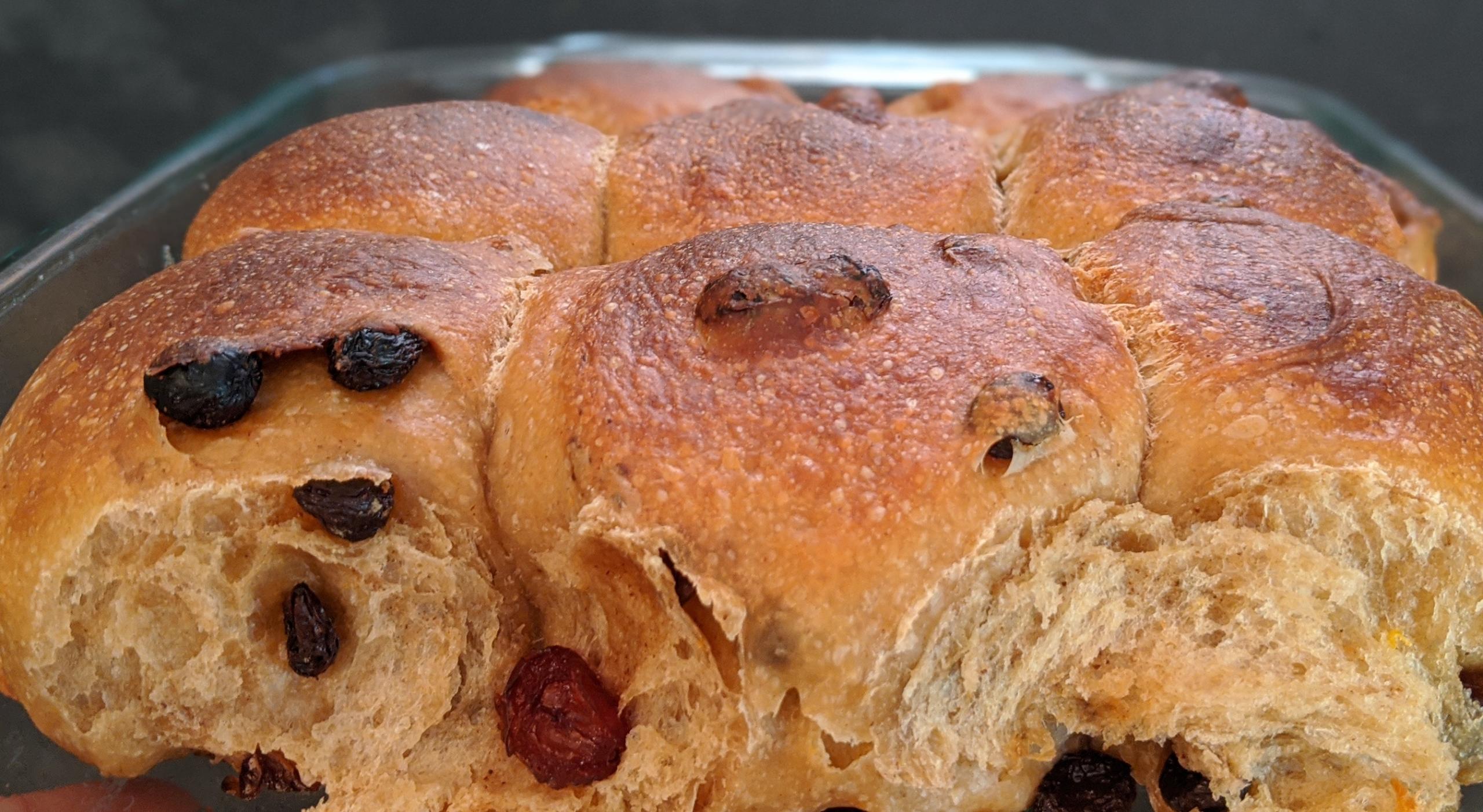I've been wanting to develop a SD Hot Cross Bun formula for several years, and, despite rossnroller's verdict that his CY version was better, I declare these to be not only a success but superior to all previous Easter's CY versions we've made.