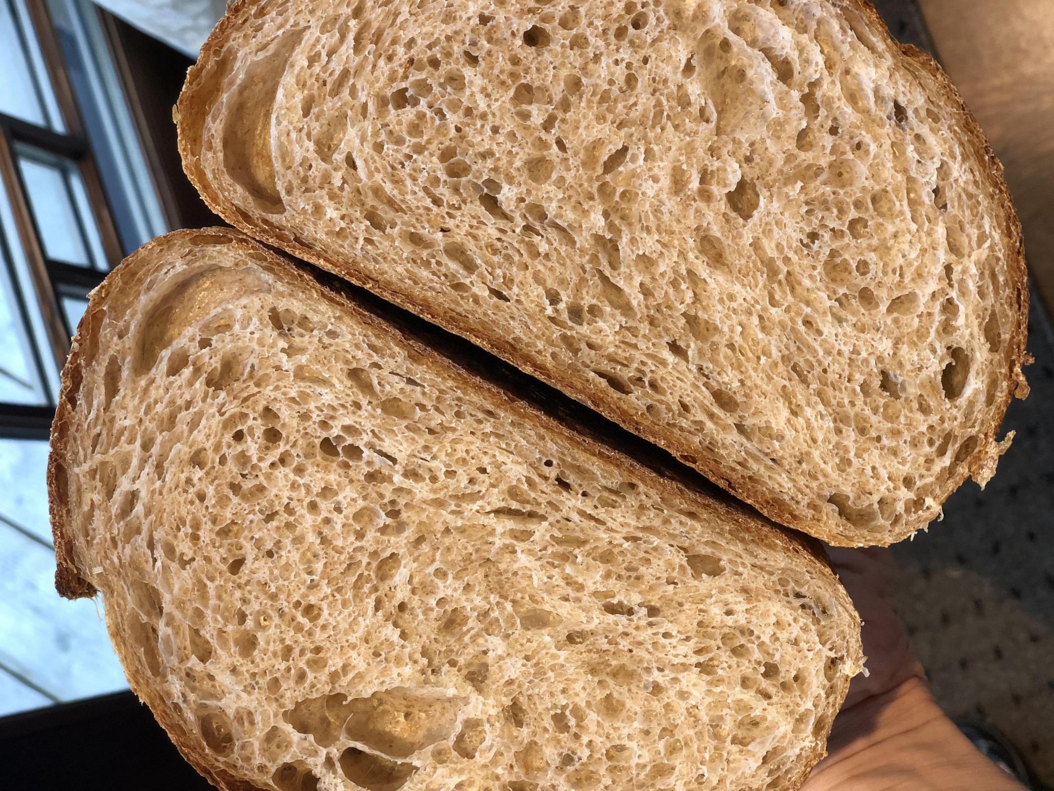 That you could produce such a nice crumb with that much WW is impressive. Would like to hear more about your mixing and folding procedure. I have tried VWG but it made the bread kind of rubber like and I didn't enjoy the flavor. What brand did you use? Sorry to hear that flour is in short supply. The markets around here have been getting some stuff back in stock again.