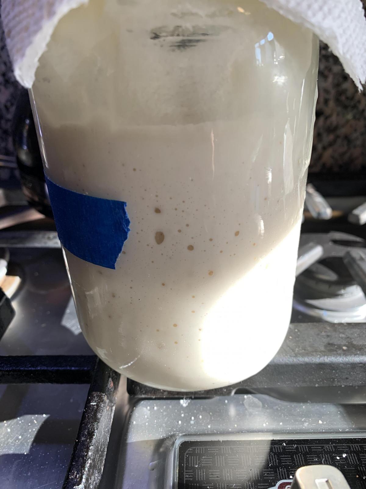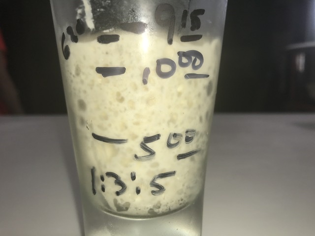 Is that where you see that it has risen, left a line then fallen back down? If so, then it hasn't done that yet. After I feed today I will pour into a clean jar.