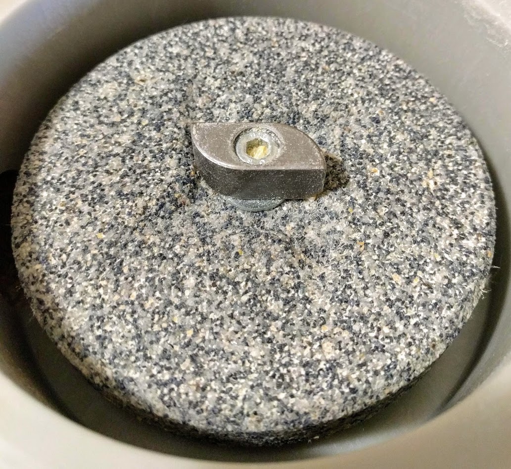 Grind 1 c of white rice and discard. Always do this with new stones. Also can do this periodically to clean the sticky glaze off of the old stones