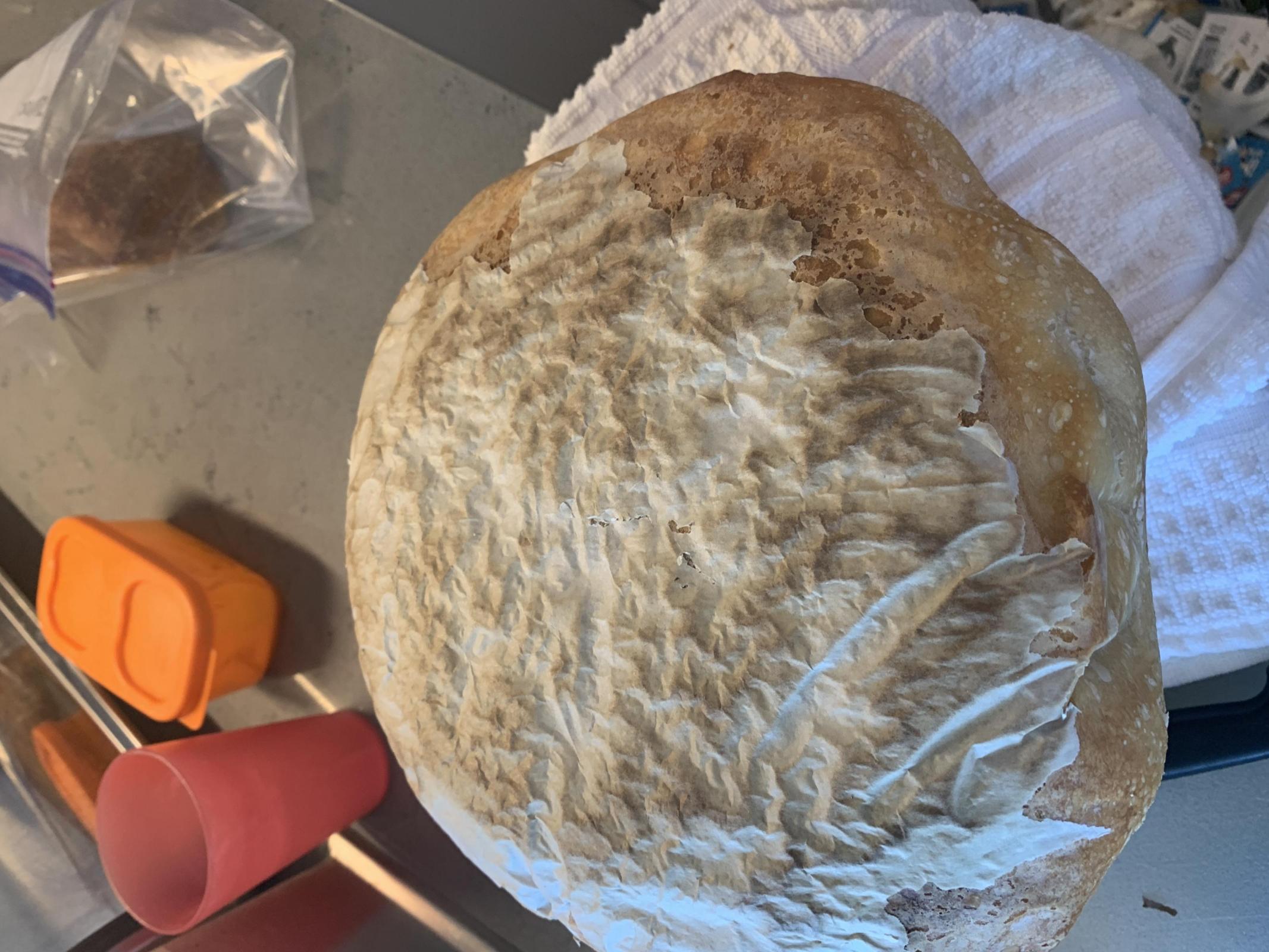So my parchment is so stuck to the bottom of my loaf that I will have to completely cut off the bottom to make it edible. I baked it in a Dutch oven.