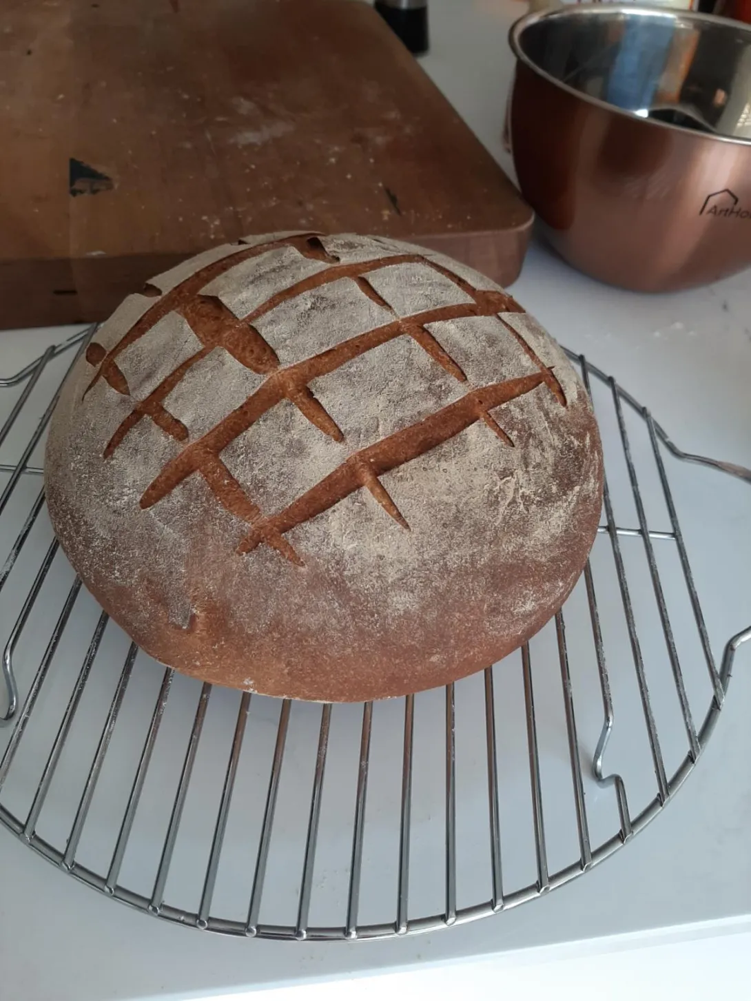 Hi folks. Lovely forum. Have been enjoying reading through the myriad of topics - much appreciated.  Decided to take up bread making during the national Covid lockdown over here so have been baking a loaf every few days.  First time I've done this from scratch.  Lucky enough to have a semi newer kitchen and invested in a bosch combi steam oven as part of that upgrade so everything has been done in that.  While the family has loved the bread and it doesn't last long, I'm a bit OCD on crusts  - crunchier the better.  Been making Cob's primarily from Paul Hollywood recipe as the first type.  I'm trying to understand how to achieve 3 things please - get a big ear on the loaf, be able to alter the air holes inside and finally, a tooth breaking crust :)  I appreciate it may be many things to bring that together so thought it better to ask now instead of 400 loafs down the line. Have attached a few pics.   Am generally baking the bread on a tray but today tried a pre heated cast iron pan that certainly browned the base better. Also been playing about with higher temps for first 10 minutes of baking etc to see if i can get more caramelisation on the crust as well.   Happy for feedback. Got plenty of pics and happy to answer any questions