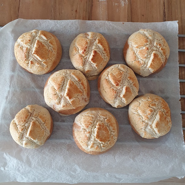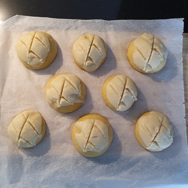 Another thing that really helps is doing the final proof in a warm environment, around 30 degrees Celcius (86 F). I put the dough in my microwave oven with a cup of hot water. This gives quite some growth to the dough right before baking. This worked best with smaller breads, like the 'semitas de yema' (see pics below) and 'mallorcas'. While there's still room for improvement in getting a good rise, I think these adjustments work quite well.