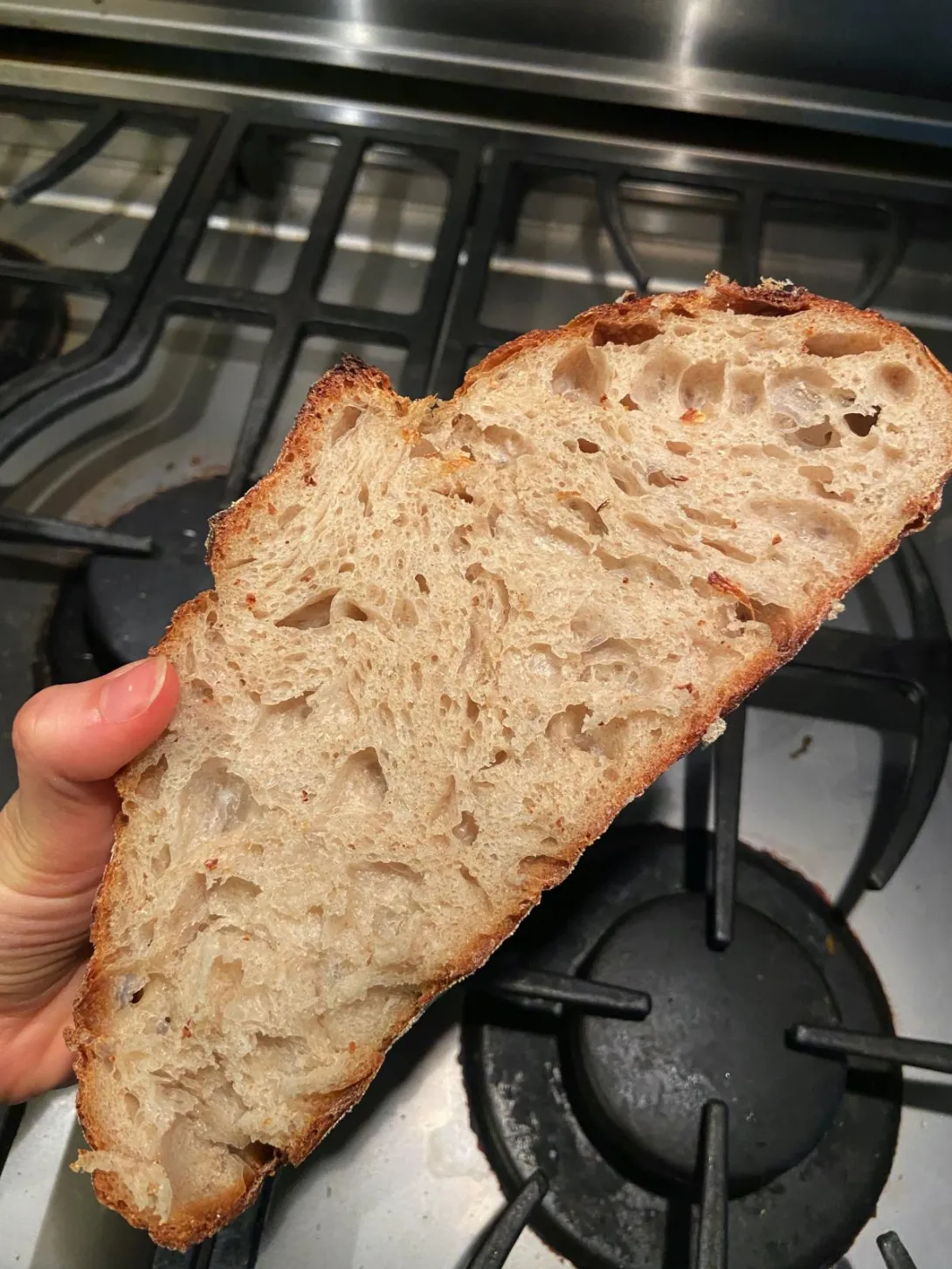 Hello! I am new to bread baking and started with the Tartine bread procedure. My loaves have all been turning out similarly to the attached picture, and I am wondering if anyone has any suggestions to achieve a more open crumb and more oven spring. My loaves have been flatter and more dense than I would like. Any suggestions would be much appreciated!