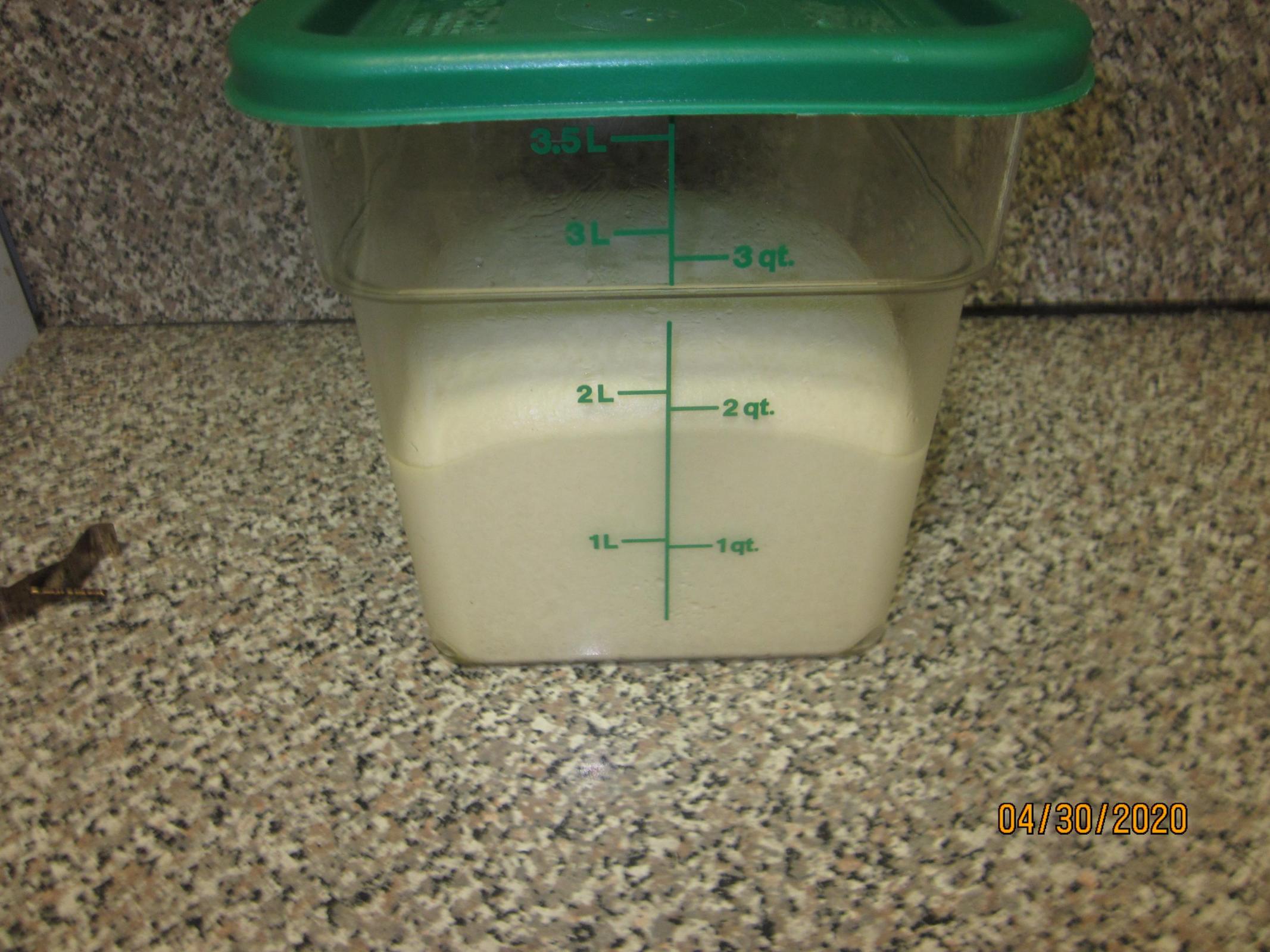 The pre-shaped bialys are looking good after spending the night in the refrigerator. I was waiting to pre-shape last night until I reached 2 1/2 L. For what ever reason the rise was lazy yesterday and I opted to finish the bulk in the cooler. Log in or register to post comments