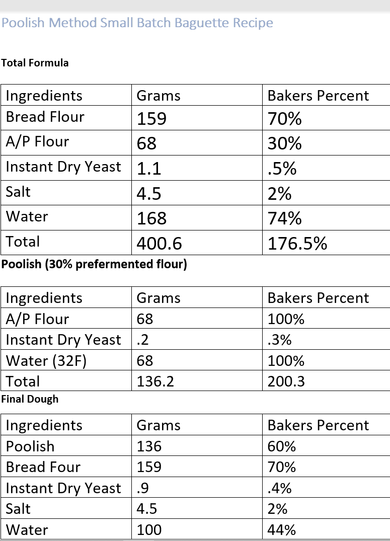 (B's (%) = Baker's Percentage = Baker's Percent) (Tr (g) = actual input amount = Truth Input) ■ Poolish Formulation B's (%): 30.0%, Tr (g): 68.0g All purpose flour B's (%): 0.1%, Tr (g): 0.2g Instant Dry Yeast B's (%): 30.0%, Tr (g): 68.0g Water (32°C) ■ Poolish process|room temperature : 23°C ■ Click the Subtitle button → Subtitles will be displayed in the video. 1. Put water in the bowl. 2. Put the instant yeast and mix evenly the instant yeast. 3. After adding All purpose flour, Mix evenly until the flour is invisible. (poolish temperature: 24°C) 4. Completion of poolish: 12 hours fermentation ■ Dough Formulation B's (%): 70.0%, Tr (g): 158.7g Strong Flour(Bread Flour) B's (%): 2.0%, Tr (g): 4.5g Salt B's (%): 0.4%, Tr (g): 0.9g Instant Dry Yeast B's (%): 44.0%, Tr (g): 99.7g Water (30°C) ■ process|room temperature: 23℃ 1. Put water in a bowl filled with Poolish. 2. Disperse Poolish in water. 3. Instant dry yeast is added and dispersed in water. 4. Put Strong Flour(Bread Flour). 5. Add salt. 6. Mix evenly until the flour is invisible(Dough Temperature: 22°C). 7. After 30 minutes of rest, the first fold (folding) 8. After 60 minutes of rest, the second fold (folding) 9. After 30 minutes of rest, split 100g 10. pre shaping, At room temperature for 20 minutes 11. Mold in baguette shape (length: 19cm) 12. Final fermentation: 50 minutes at room temperature 13. Preheat oven. Oven temperature is raised as high as possible during the second fermentation to preheat (my oven maximum temperature: 250℃) Preheat the lodge in a fully-heated oven for at least 20 minutes.(Lodge LCC3 Cast Iron Combo Cooker, Pre Seasoned, 3.2-Quart) 14. Cut the final fermented dough surface with a knife(use coupe knife). 15. Put the dough into the preheated lodge 10-inch combo cooker floor 16. Cover the lodge 10-inch combo cooker lid. 17. Put it in the oven 18. After baking for 15 minutes, remove the lodge cover and continue baking for 10 minutes. (25 minutes in total) ■ Note: Always be careful when using oven, lodge combo cooker (It is very hot, so use it after wearing very thick oven gloves)
