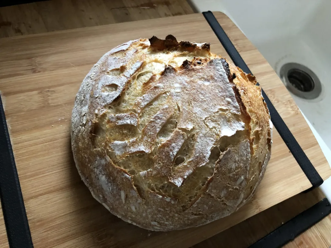 Now with that being said, I noticed something really interesting when my boule came out of the oven. The skin seems to have not only broken, but it looks like it's peeling off somehow (see the singed bits near the top of the loaf in the pic). Would anybody have any idea what's causing this? It's not necessarily a problem as the bread was still great but just curious what is causing this. Crumb was fairly open if that offers any clues.