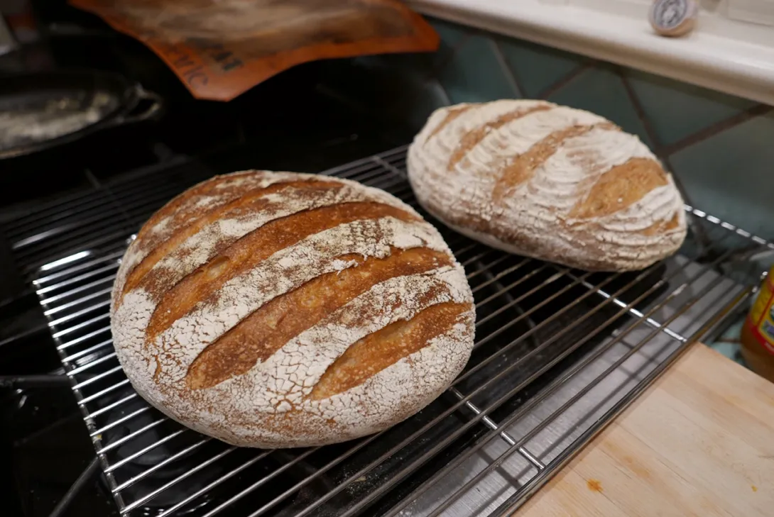 Here’s my creations from last night 600g White four, 200g White whole wheat. 320g starter, 10g sea salt, 460ml water. About 8 hours ferment. Into the oven at 450F, convection bake.