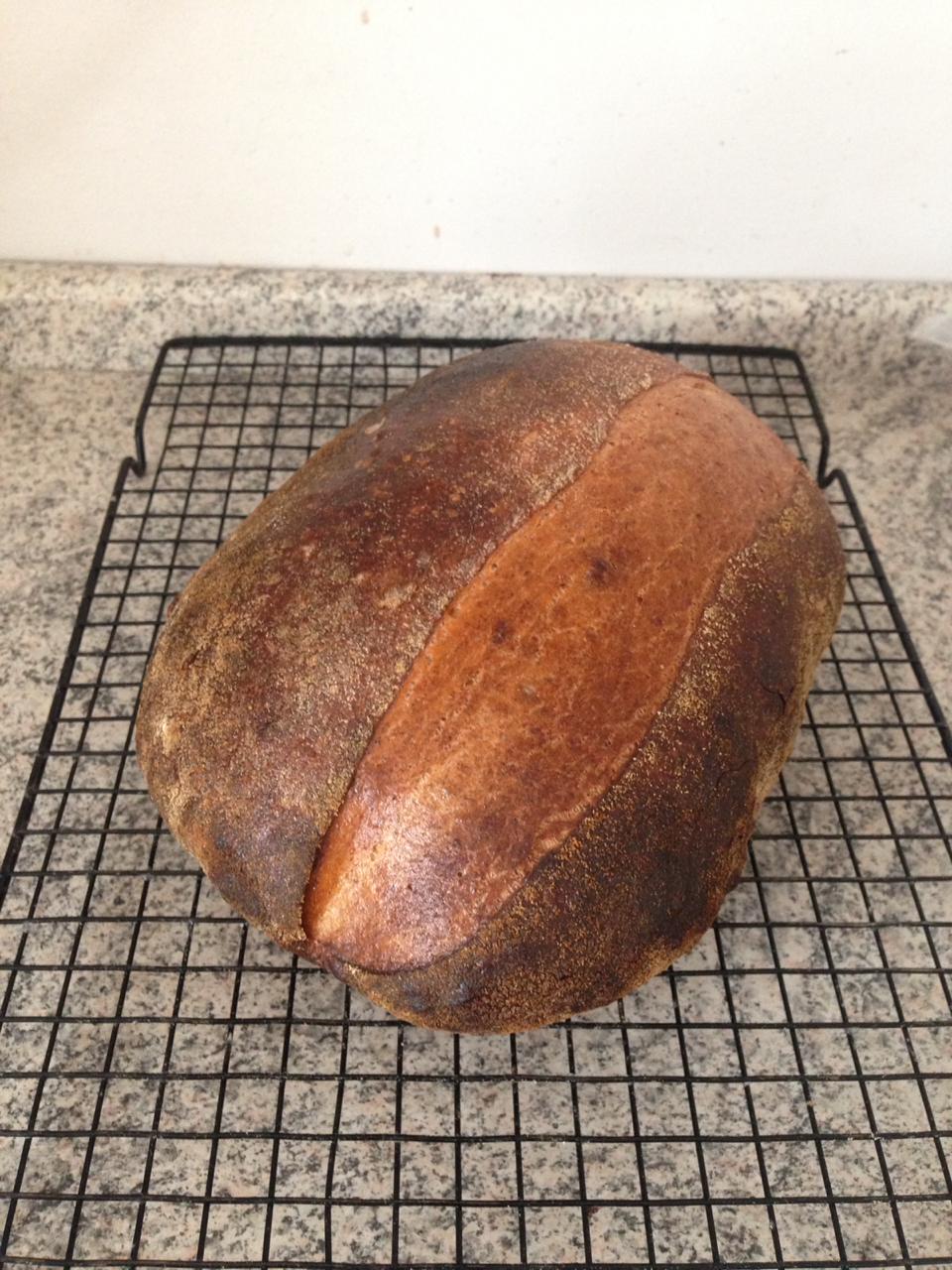 374 gr strong flour (11% protein with added gluten up to 13,8%), 55 gr whole wheat flour, 25 gr rye flour , 345 gr water, 9 gr salt, 92 gr levain.