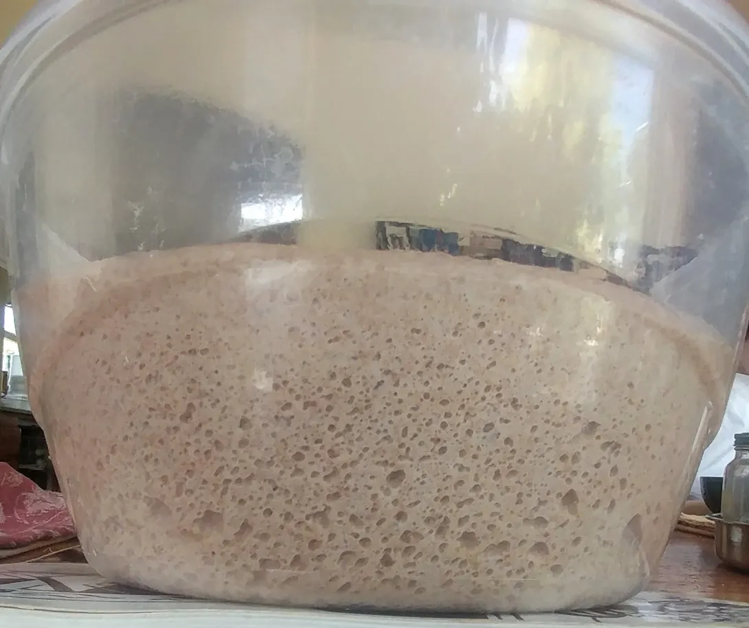Hi all, I though I would post a few photos to show how I evaluate whether bulk proof is finished in a 100% whole wheat dough.