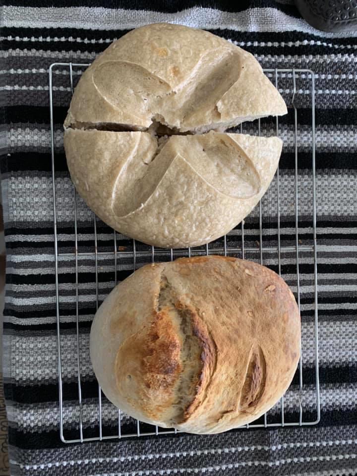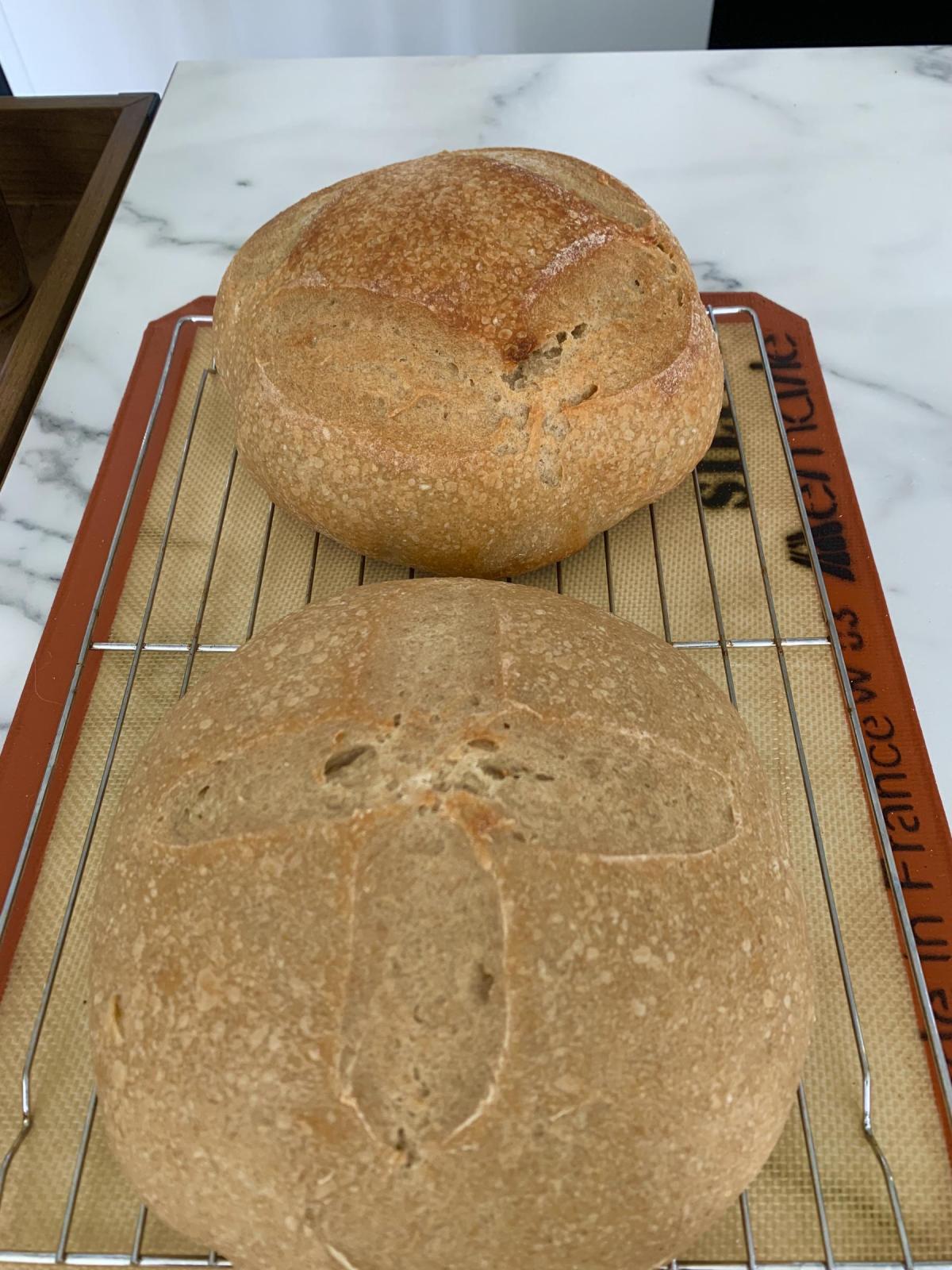 I have attempted to make sourdough a couple times. My starter is around a 90% hydration level, and I am using https://amyinthekitchen.com/beginners-sourdough-bread/ as my recipe. All of my loaves seem to have the same problem: blonde crust, little rising and dense crumb. I bake in a Dutch oven, as the recipe suggests, and I proof for about 5 hours total before proofing in the fridge overnight. My starter is pretty strong and doubles in size consistently. Any help would be appreciated! The pictures are from two different days. The photo that is more risen and more puffed up was baked in a Dutch oven without the lid as an experiment. All of the loaves look like the crumb photo.