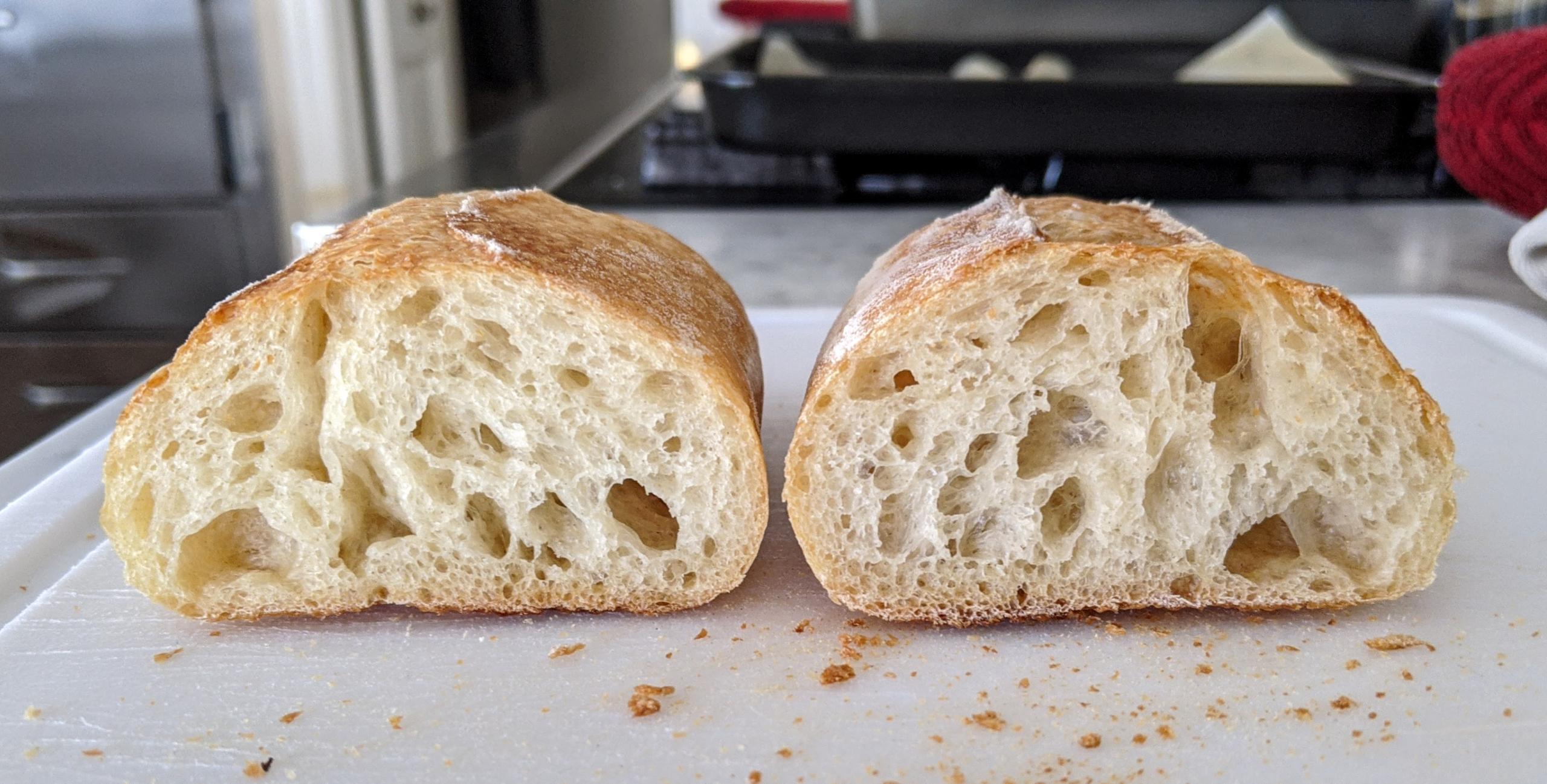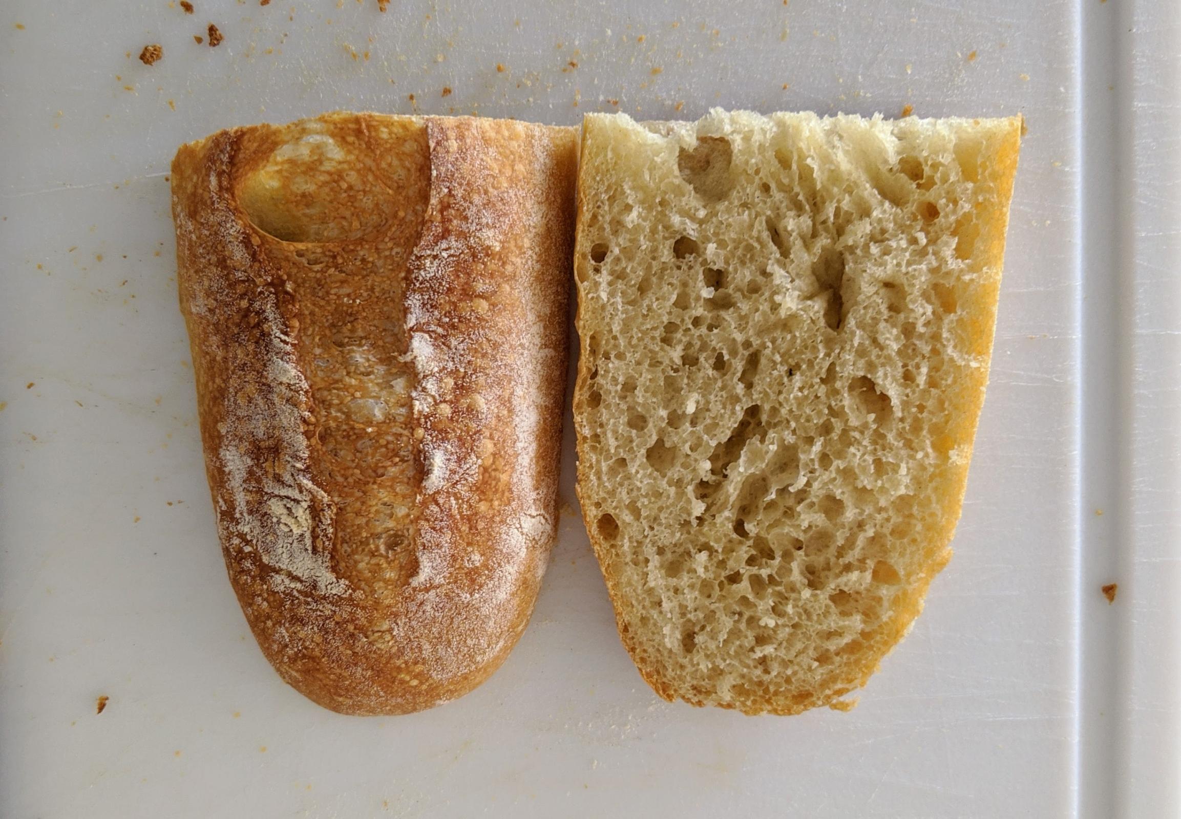 But the inside is perfectly fine, with a decently open crumb. It tasted delicious! And the crust looks fine when sliced into a sandwich.