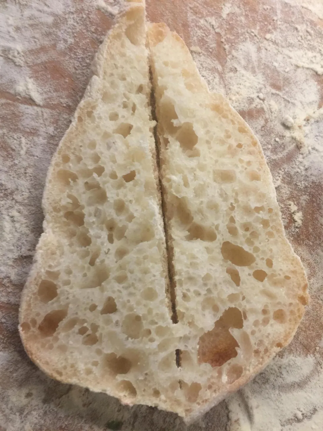 The result has holes, not always very big,  my husband loves it but I would prefer if the crumb was chewier.