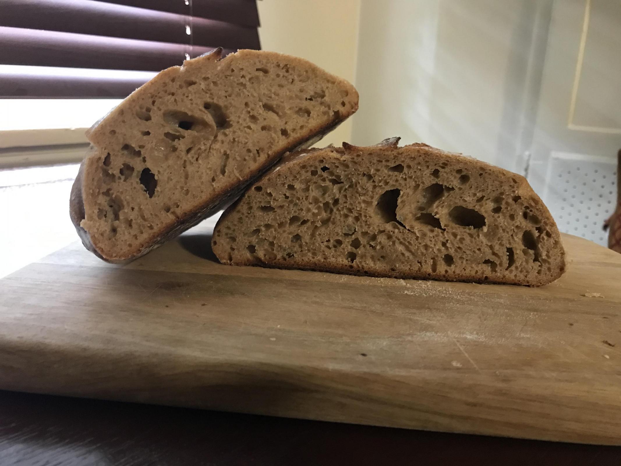 All in all, a very informative experience as well as a rewarding one. I did end up with one delicious, albeit smallish boule. Next time I will try not dividing the dough to get a more 'normal' sized boule.
